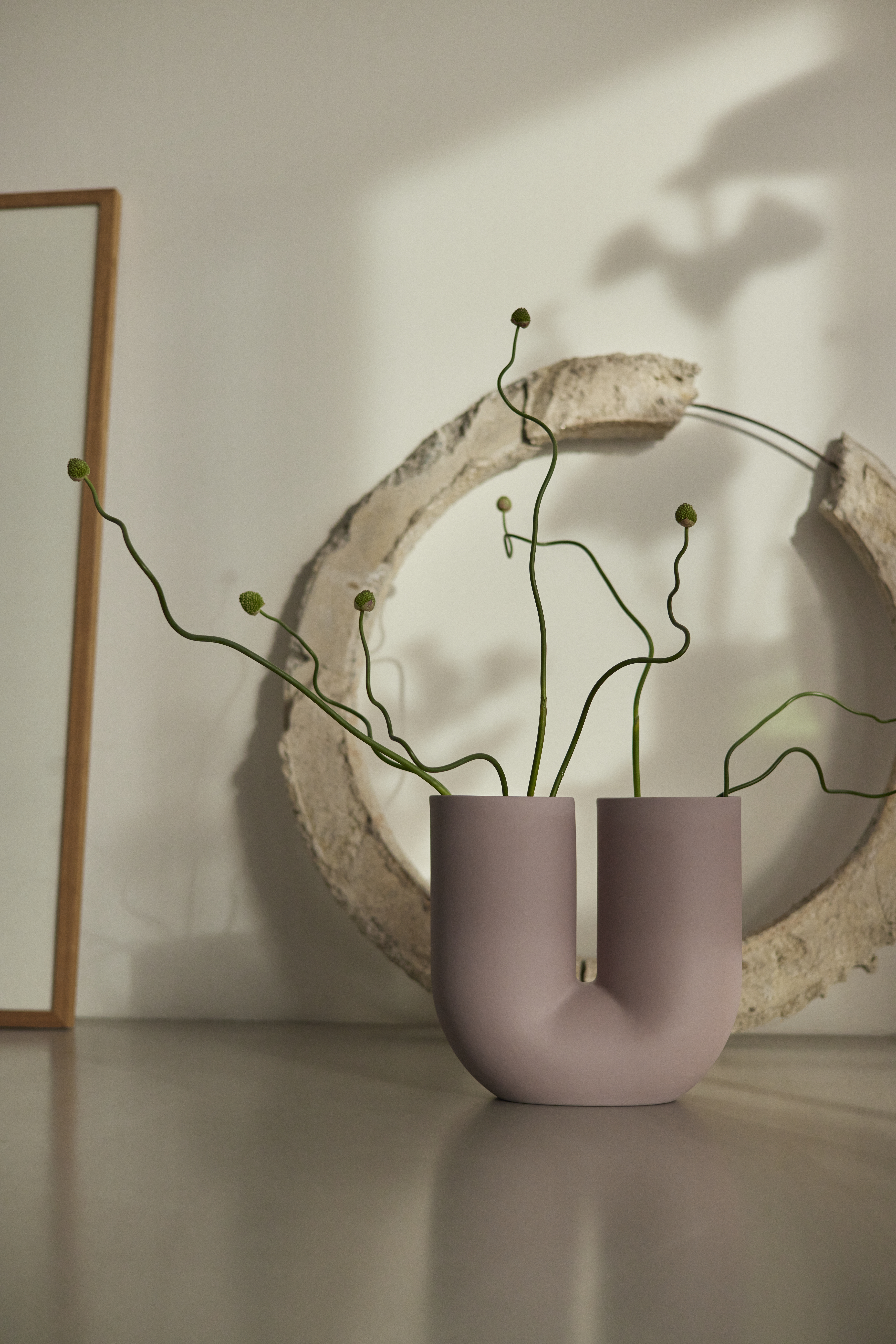 On working with the shapes of Muuto's Kink and Ridge Vase, Marvin notes: "Both designs have an interesting, distinct shape. To me, the perfect vase is not just a vessel, but more of a dialogue between vase and flowers — both have something to contribute with"