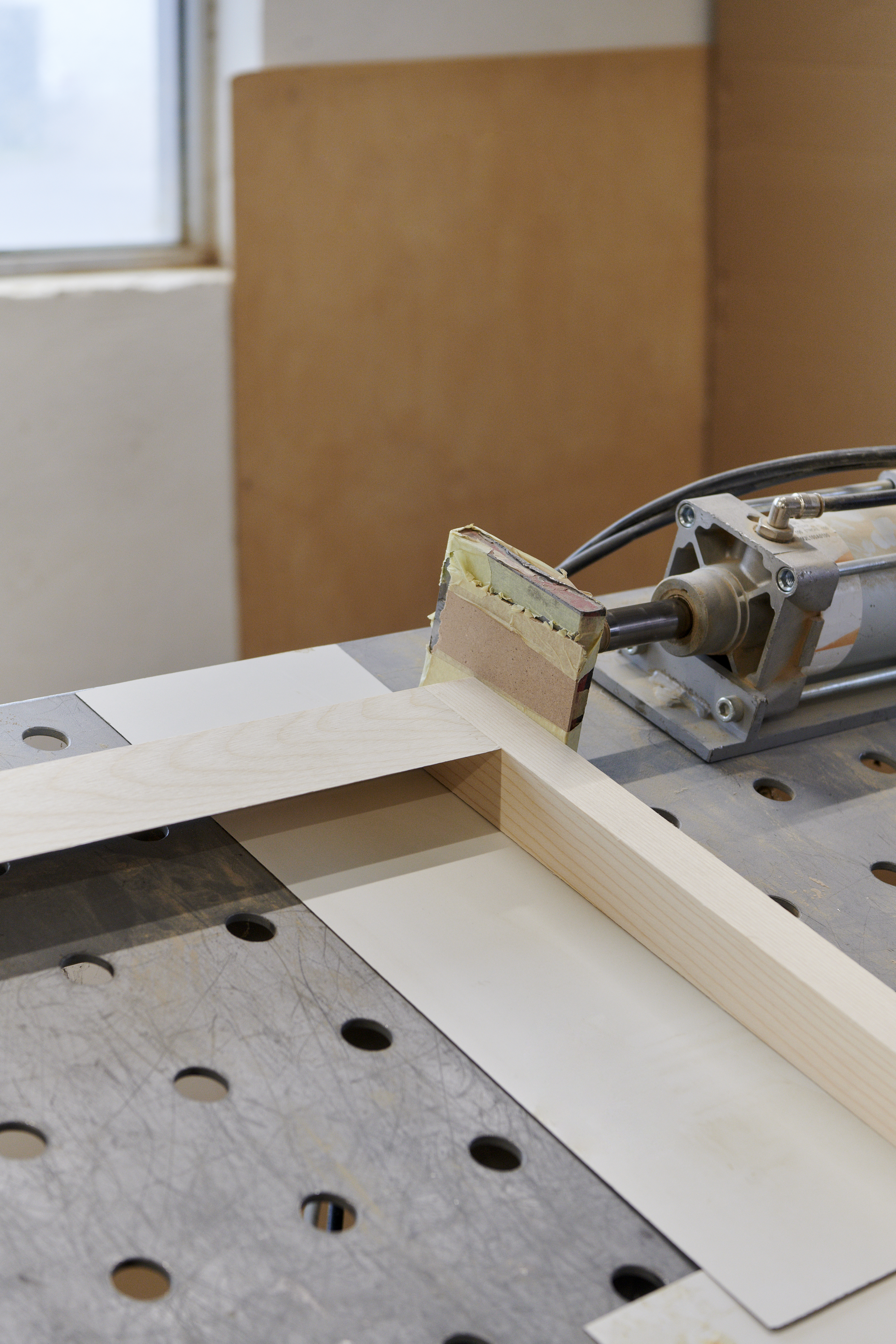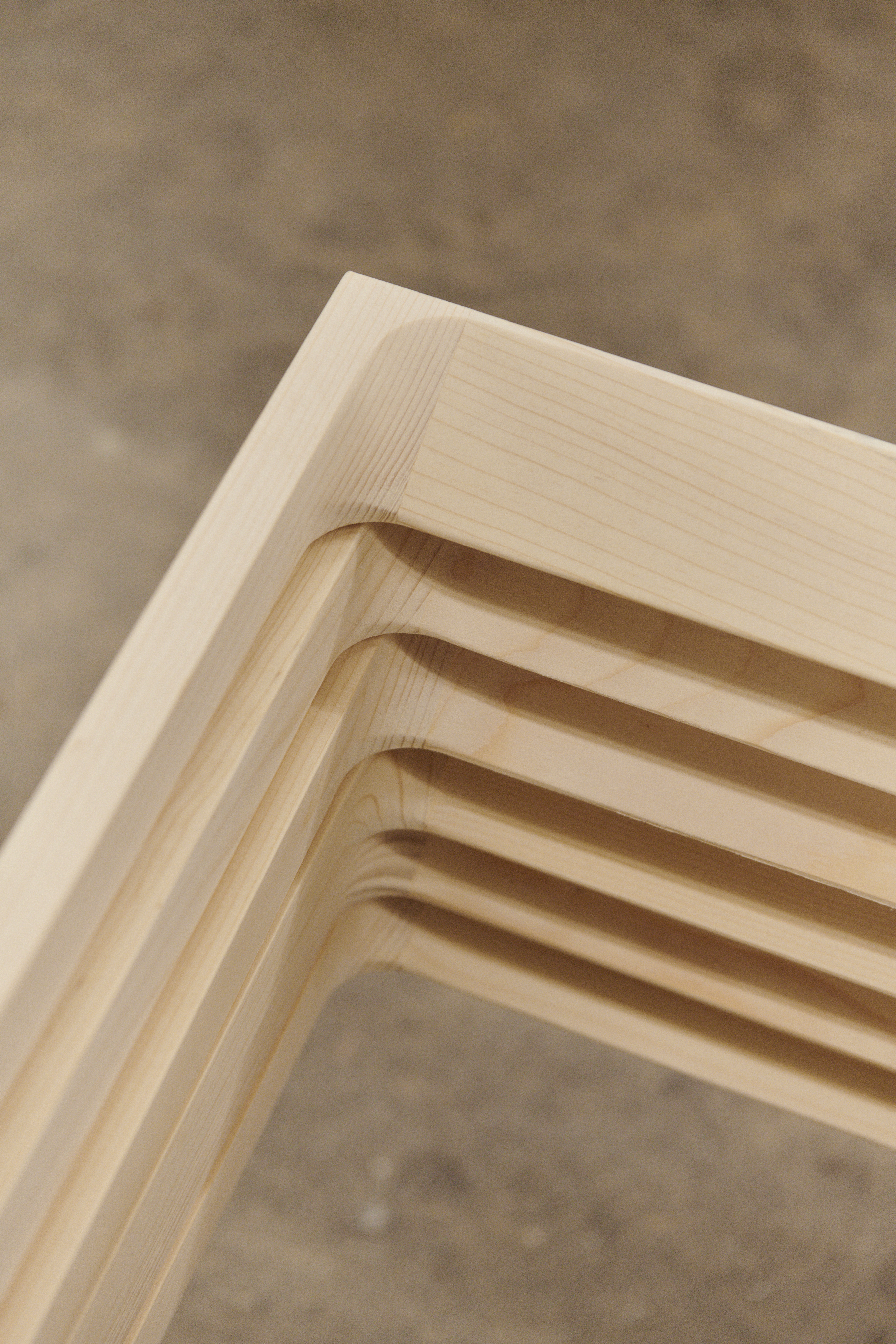 “It is about the idea that meters and meters of a profile would come out of a molding or profiling machine, then cut into lengths and assembled to make up a whole object. I love how it is a language that easily translates to a variety of sizes.”
