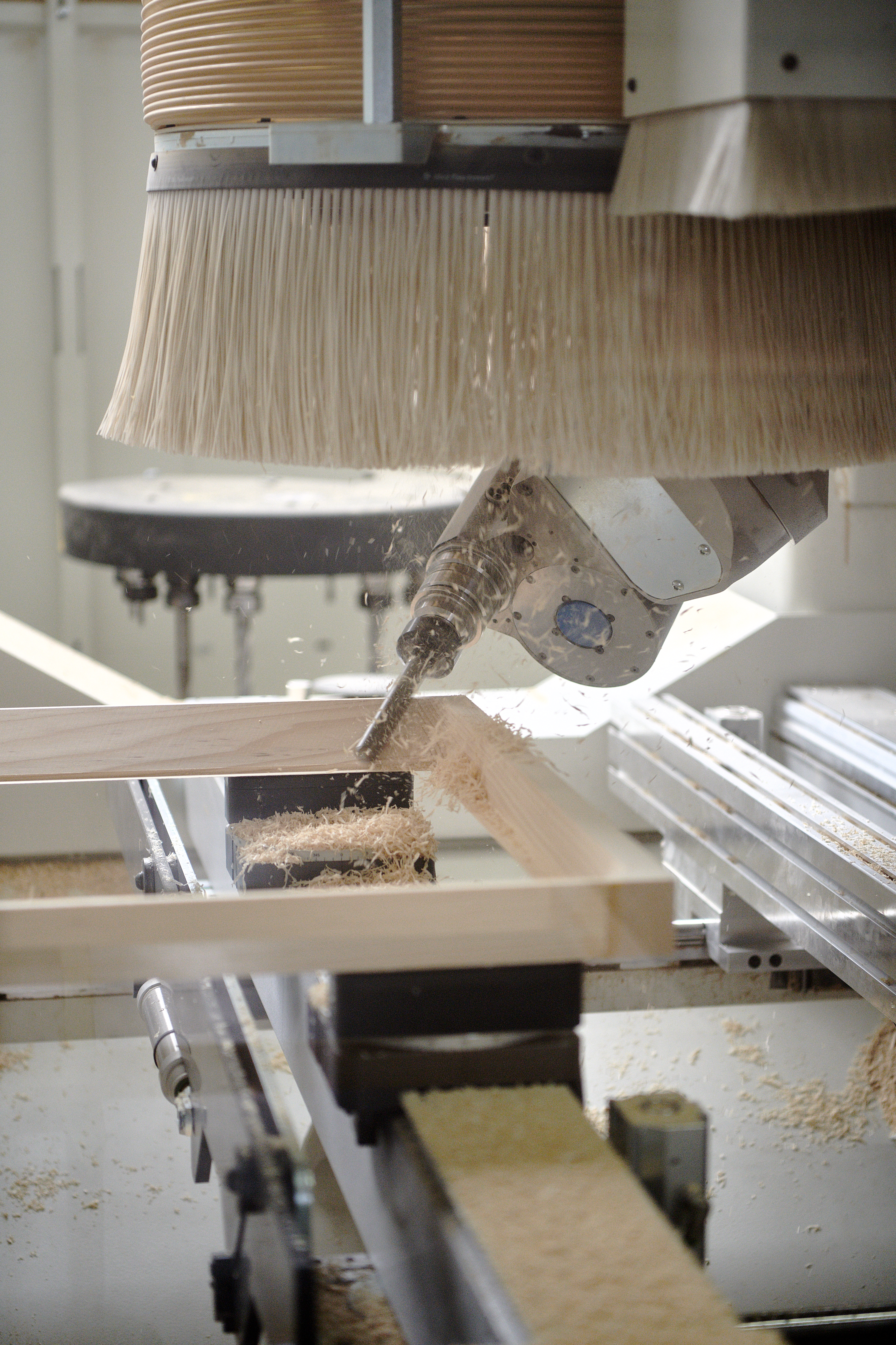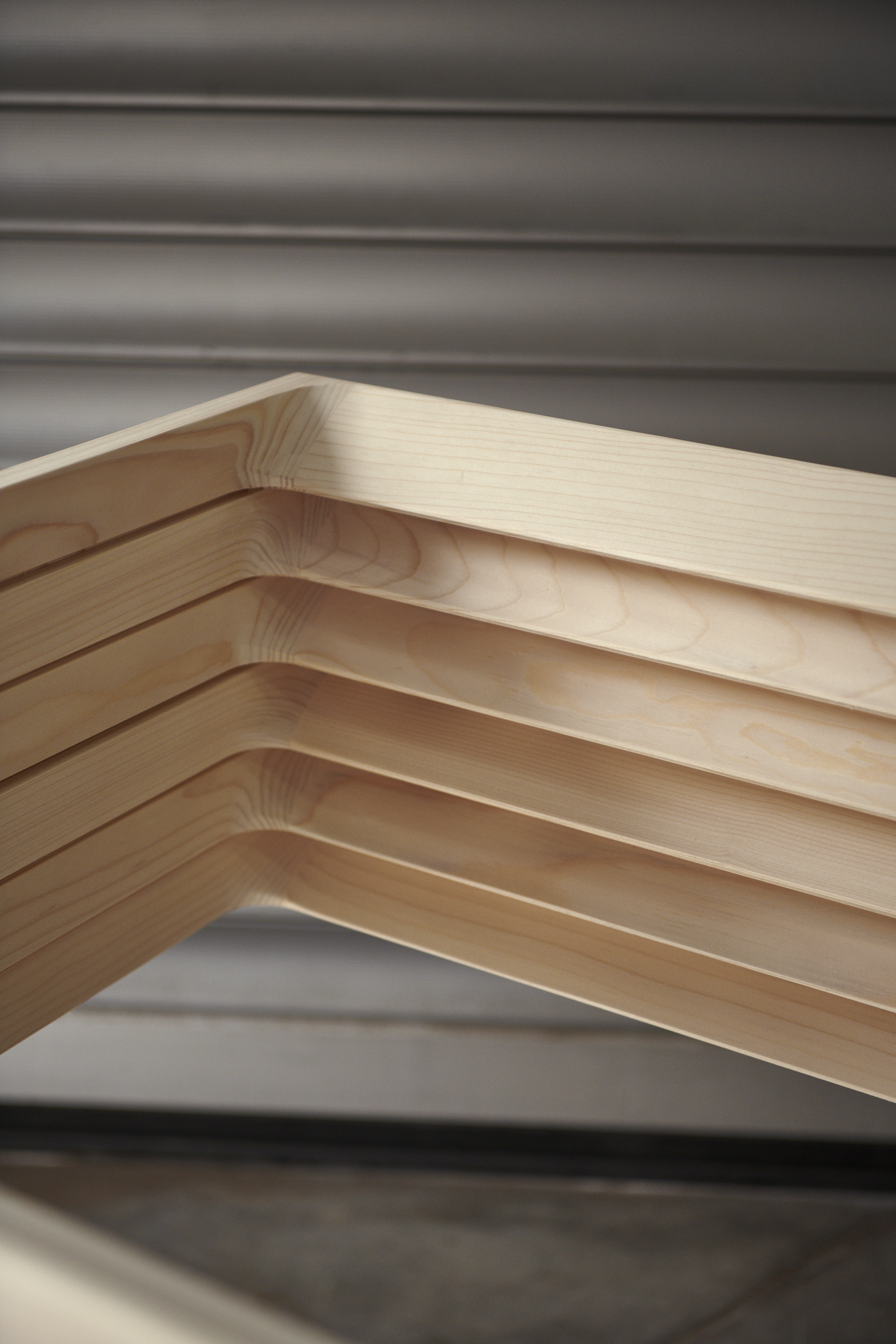 Slightly obsessed with material extrusions, he took its visual character to solid wood, blending technology and craft. The result is a distinct sense of flow and sweeping motion.
