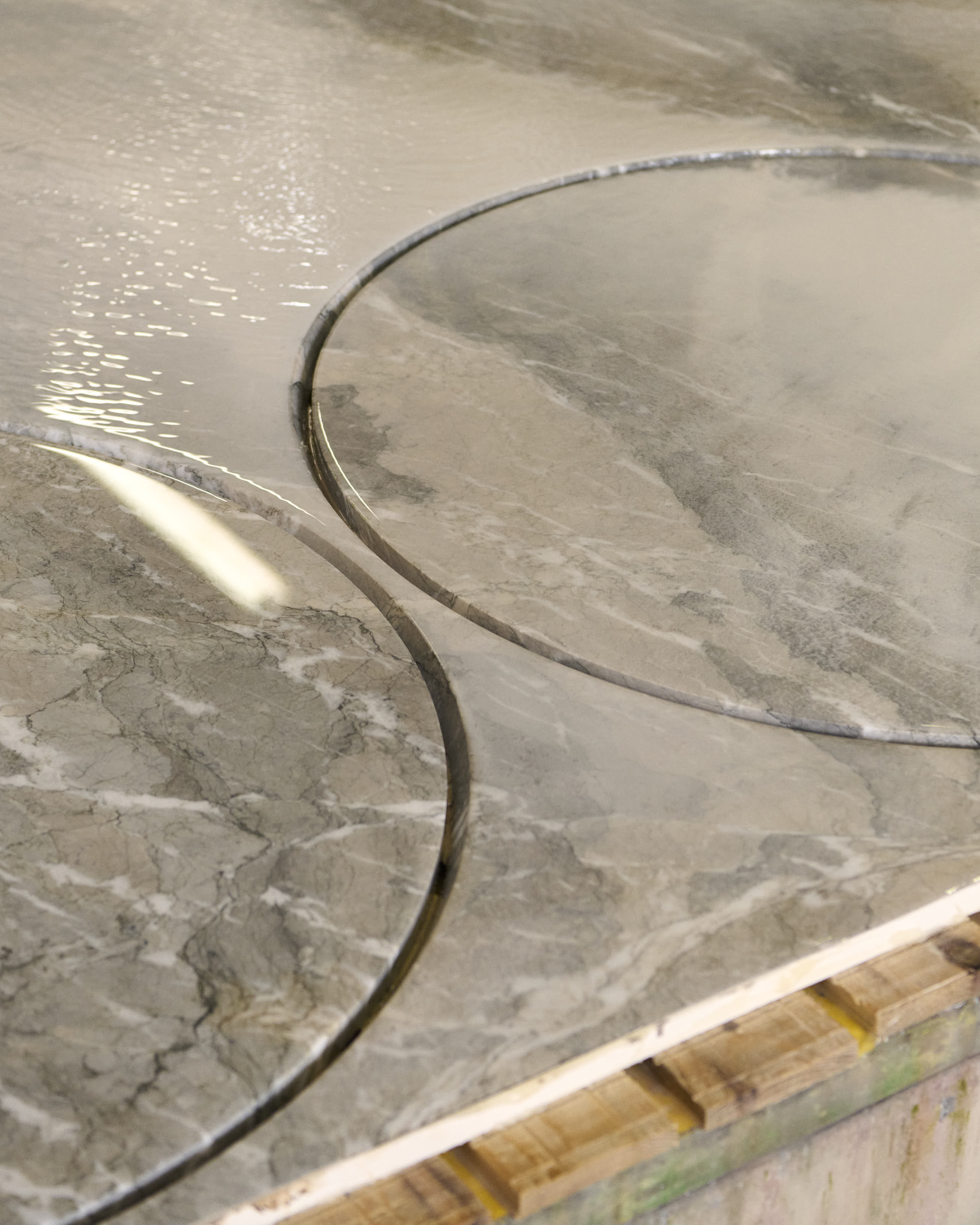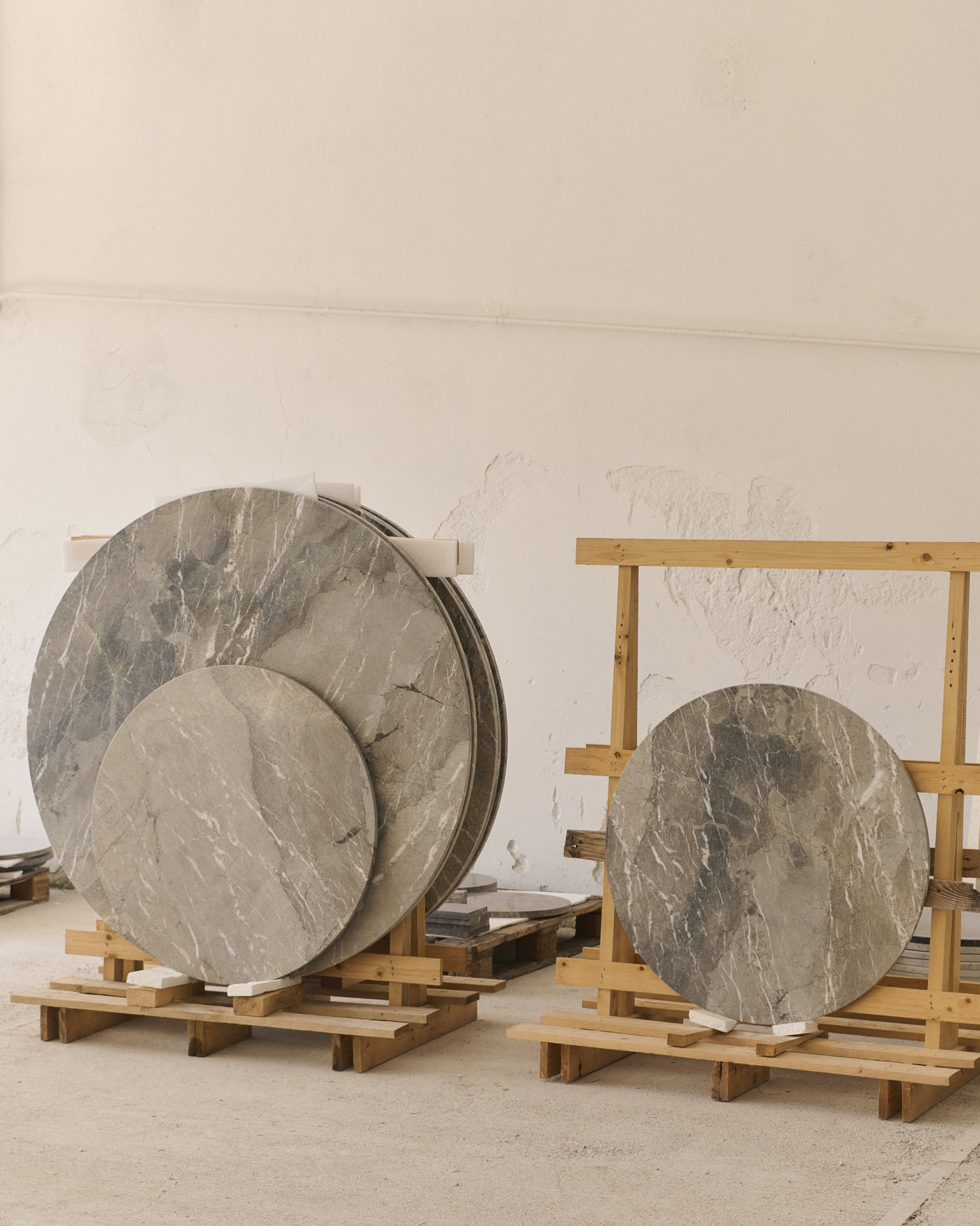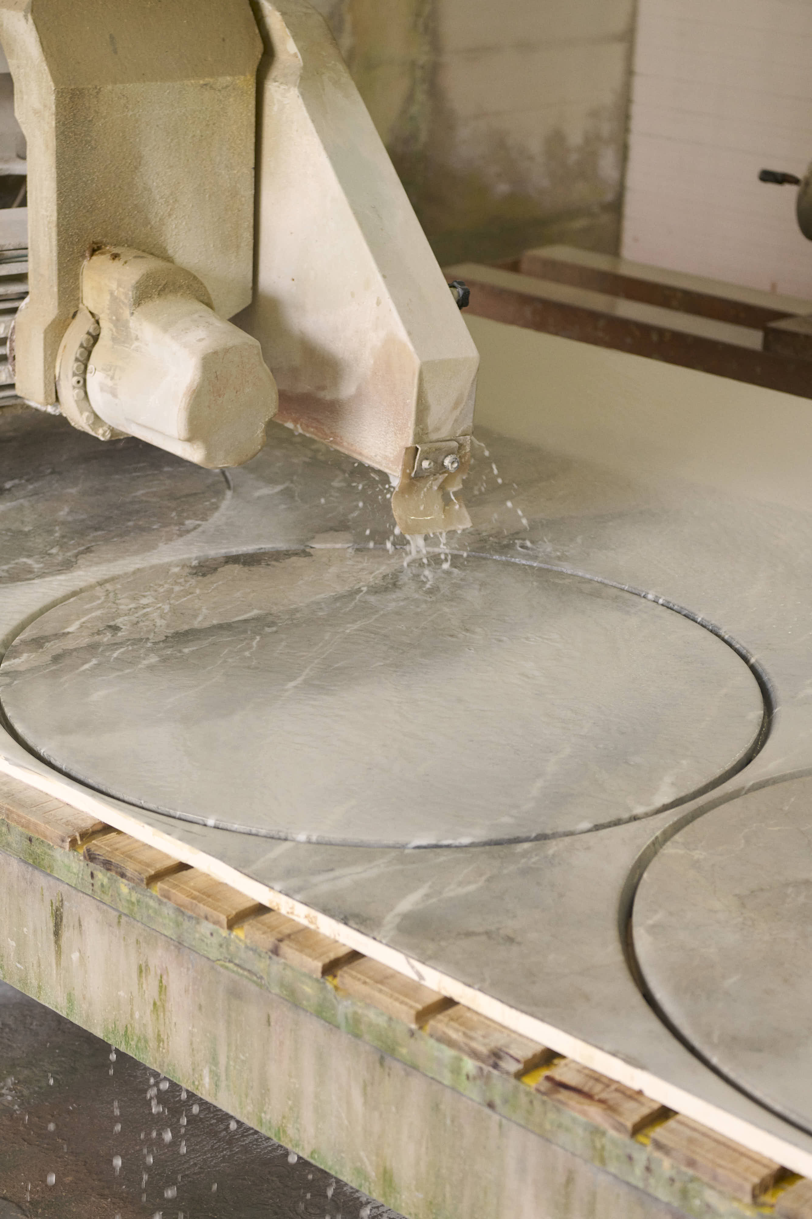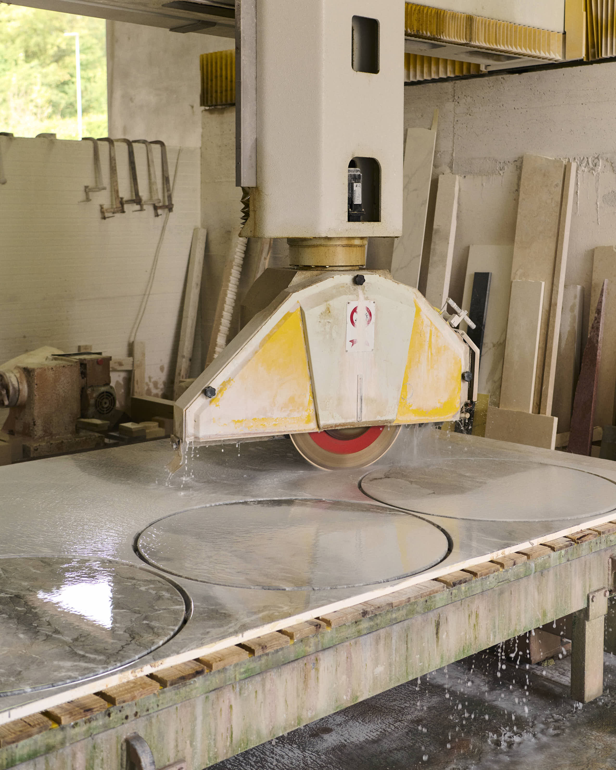 Once quarried, the raw marble is sent to a small, family-owned factory in Northern Italy in the Marche region, where the material is shaped and finished using a combination of advanced techniques and hands-on craftsmanship. After cutting, each marble piece is refined through a detailed process.