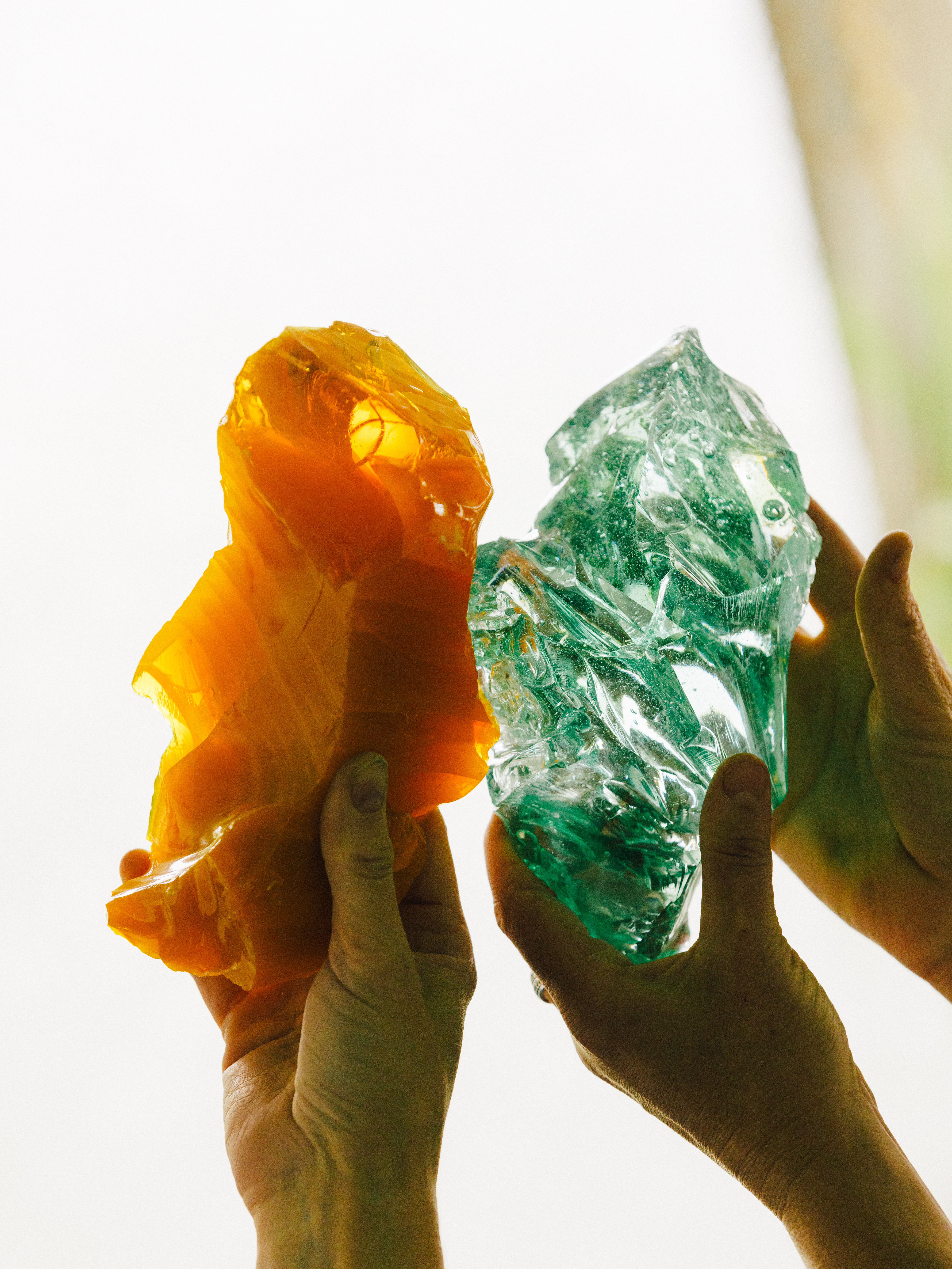 In their hands, cast-off glass becomes a precious gemstone, a palette of colors to paint with, and a transparent lens that at once changes the appearance of the world on the other side, and almost disappears. The duo has made their name creating functional artworks which elevate and celebrate remnants that might otherwise be discarded as a waste product of artistic and architectural processes.