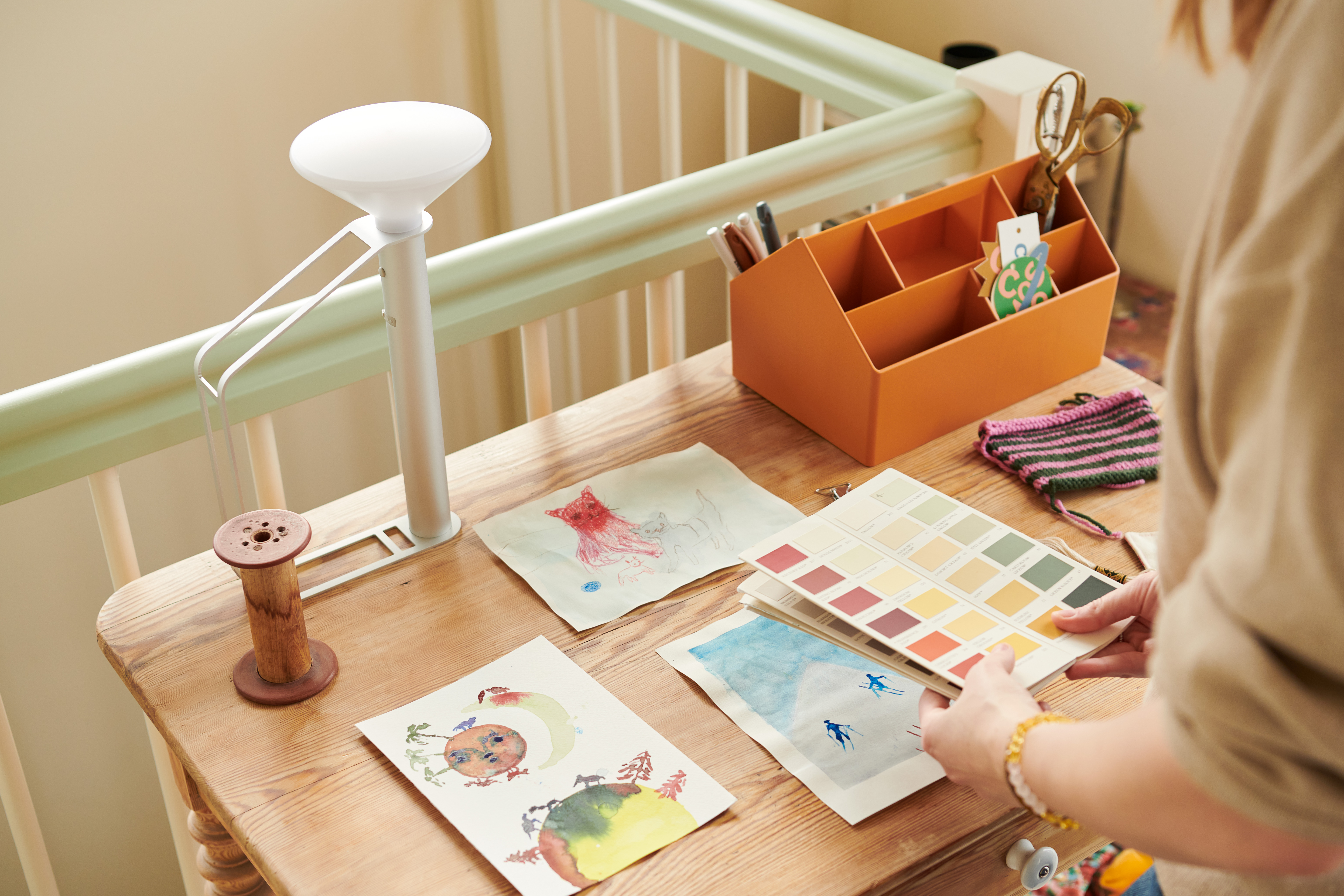 Katrine lives in a former factory with her husband, Jonas, and their two children — three-year-old Hubert and eight-month-old Teddy. They’ve made a few changes to it since they moved in, and now it’s a space for light, comfort and ease — full of her favorite things, and her boys’ books and toys. All of which is inspiring her creative ventures.