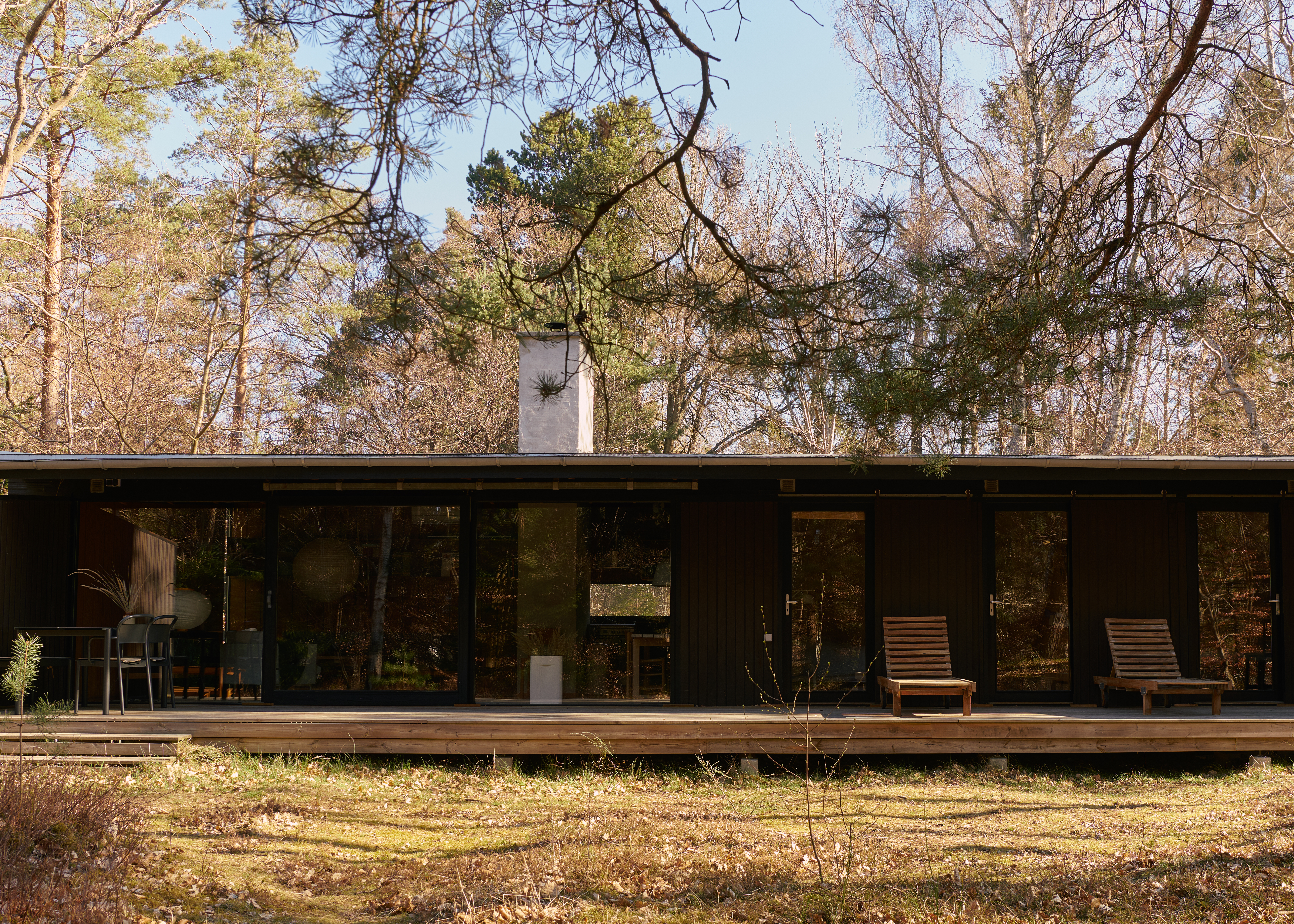 Encountering the minimalist one-story house on a hike through a pine forest in North Zealand, a mere 45 minutes outside of Copenhagen, Hesseldahl and her partner felt it was love at first sight. The dark brown exterior, with its panoramic windows, turned towards south making the most of natural light, is emblematic to the heydays of Danish Modernism – sleek yet straightforward, deeply rooted in a holistic approach to architecture and design.