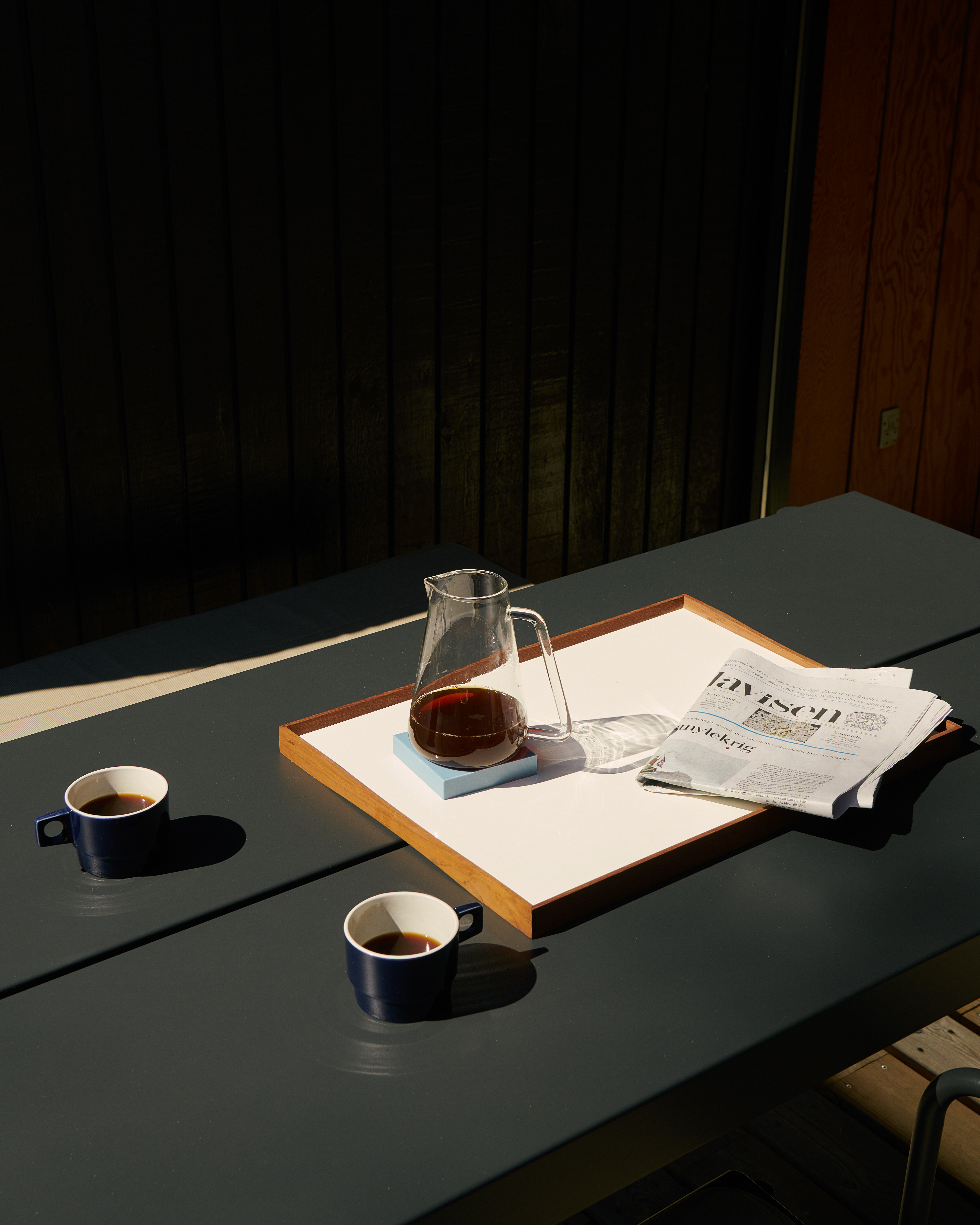 Perhaps the most influential feature of the house is light. Hesseldahl believes it is the most vital element of any interior, certainly the case for the summer house. As the day passes, the light and its soft shadowplay greatly influence the atmosphere of the space. In the summer, it bathes in light throughout the day, while the dark-er months allow for more playfulness in choosing the right lighting for every function or mood – for creeping in with a book or gathering around the dining table under the light of the Ambit Pendant Lamp.