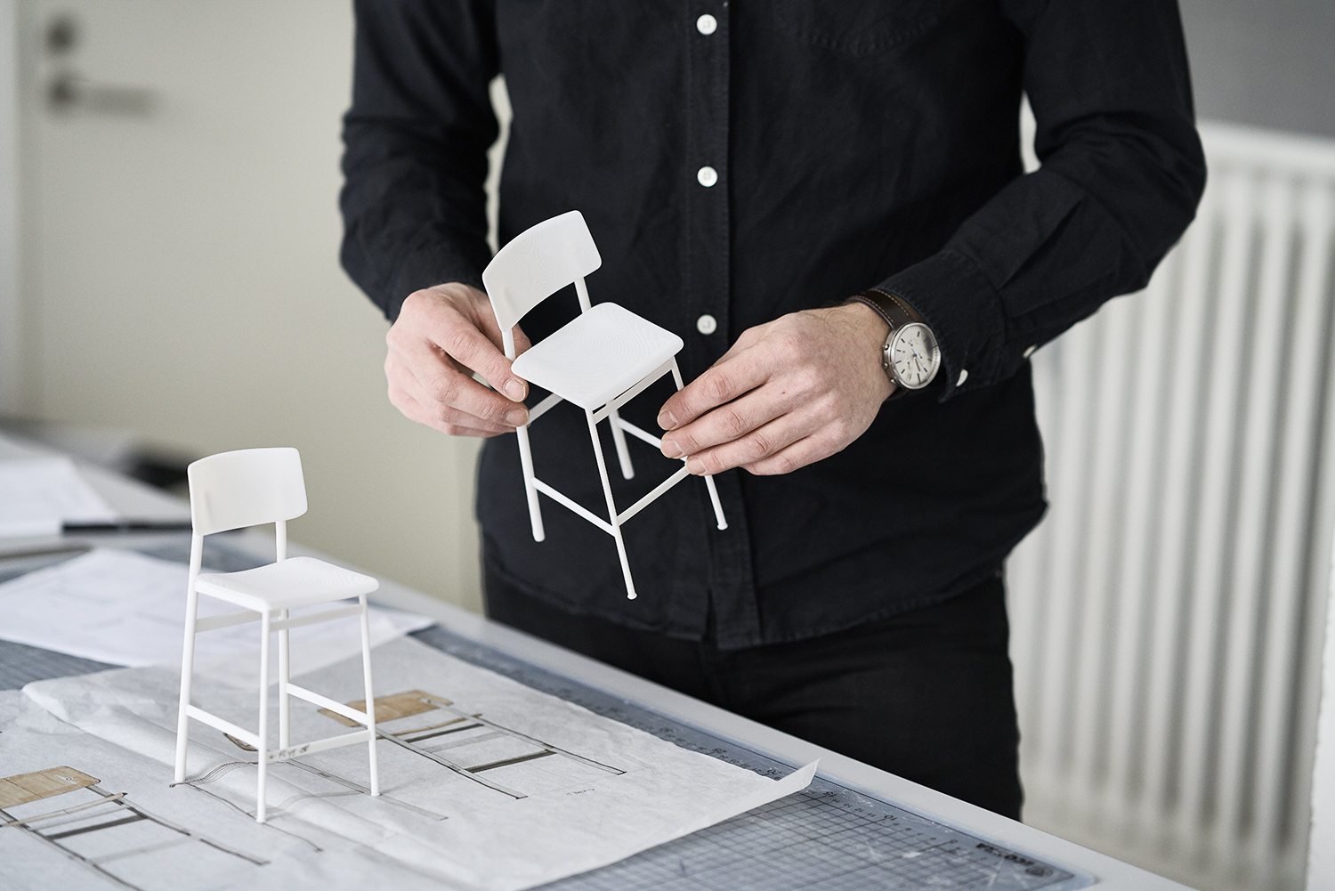 “Loft Bar Stool came as a natural extension of the original design,” says designer Thomas Bentzen, fiddling with one of the many 3D-printed models created throughout the design process. Adding a new member to the Loft family was something that Bentzen already had in mind when designing the Loft Chair: “Honestly, it just made sense for the design language of the chair to be translated into a bar stool. The form of Loft was ideal for it,” adds the designer.