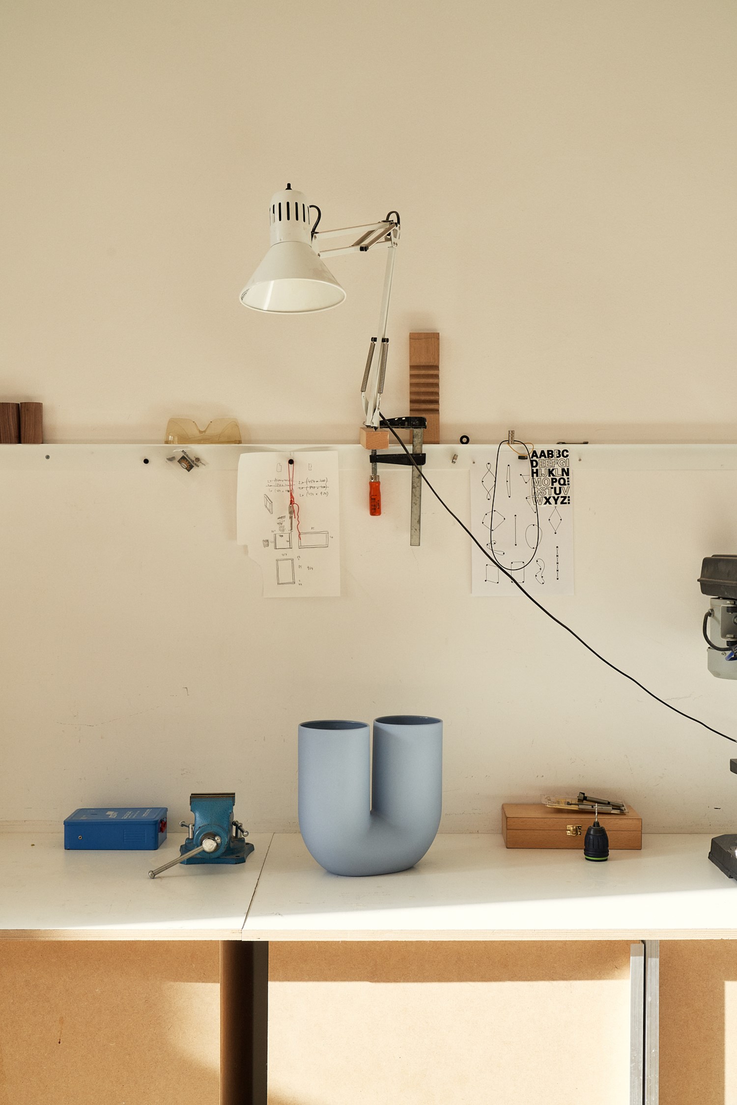 "The Kink Vase—named for the two sharp bends that create its suggestive, humanoid form—was an experiment combining digital and analog processes. Specifically, I was experimenting with Rhino, a digital tool, and slip-casting, a traditional, analog process, to create a form that would not be possible by other means of production," says Griffin when asked about her inspiration for the Kink Vase.
