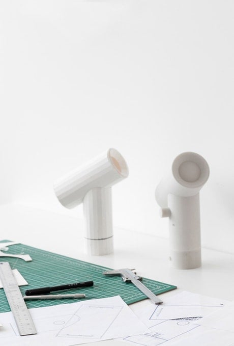Being a modernly functional design, the Beam Lamp emits light from both ends of an angled cylinder shape. The design allows the user to gradually change the amount of light shone from each end across three different light intensities, all by the click and turn of a playful dial: “The idea was to give as many possibilities for lighting control as possible while offering a poetic and interactive experience of light, travelling through a shape,” says Chung on the design that also features a rotational base.