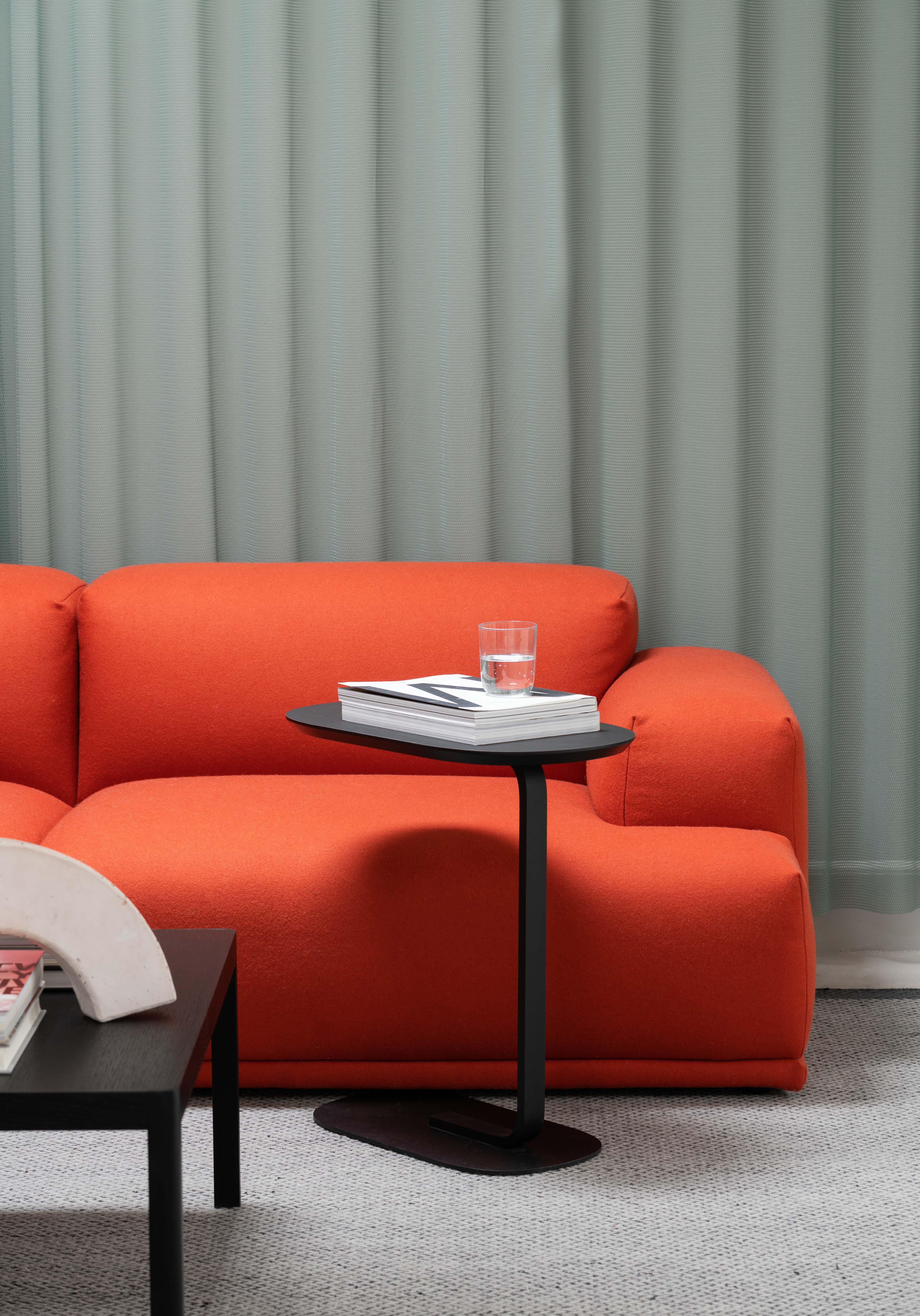 One thing that is important to bear in mind throughout the workday is that different types of work require different contexts: You might spend half a day in the office chair, working away on a project, before moving into the living room for a conference call in the comforts of your couch. Seen here is the Connect Modular Sofa and the Relate Side Table, the latter allowing you to pull it up to the sofa whilst working for a temporary desk before moving it back to its place as a side table next to the sofa after use.