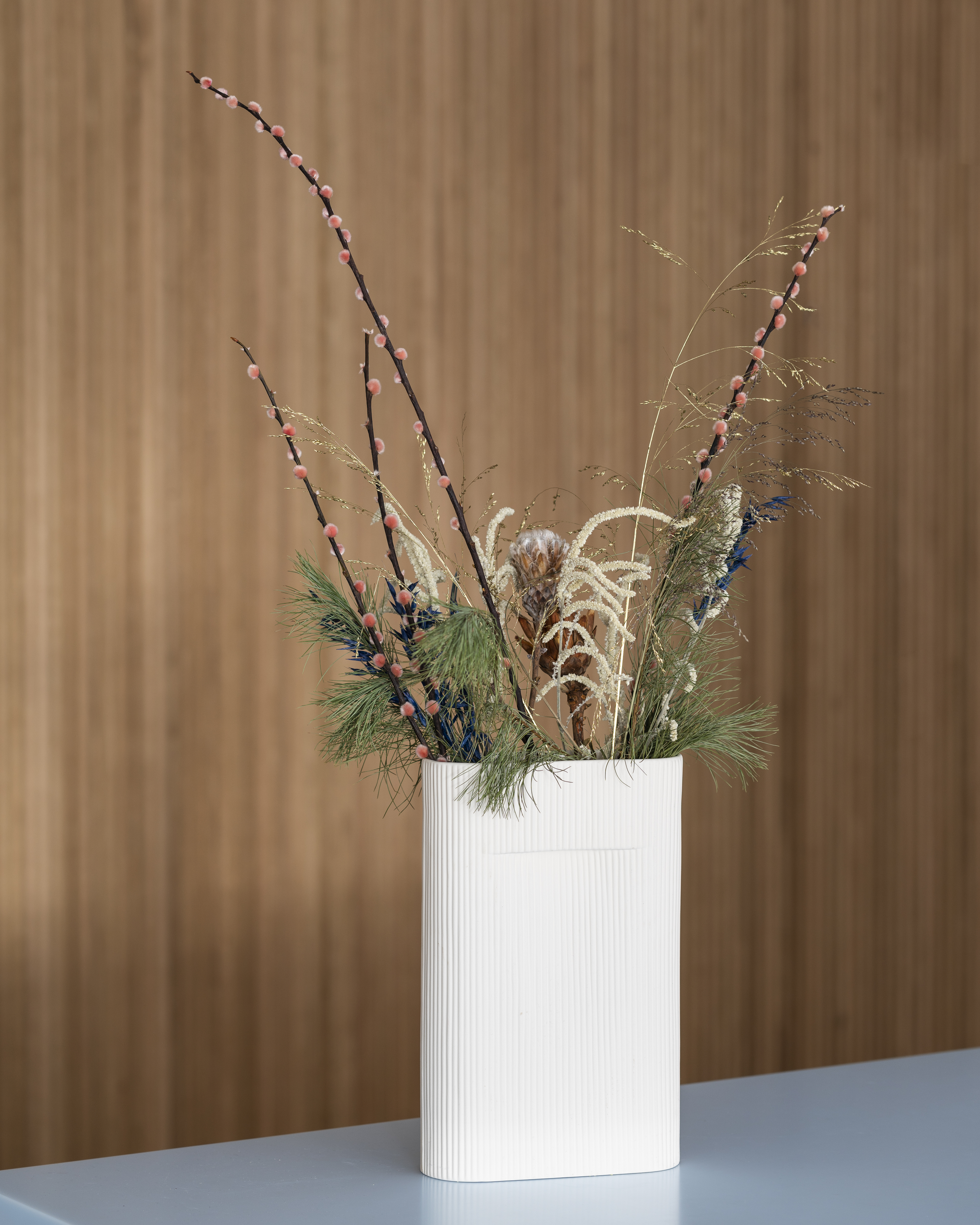 The holidays are about bringing people together and I think that the dining table is a great place for this, decorating and making table arrangements that allow us to celebrate the time spent together. I always try to create a festive setting with personal touches, using rich flower bouquets and sharing homecooked food with friends and family. For the holidays this year, I’ll be using the Wave Tray for serving dishes and the Ridge Vase for lush flower arrangement.