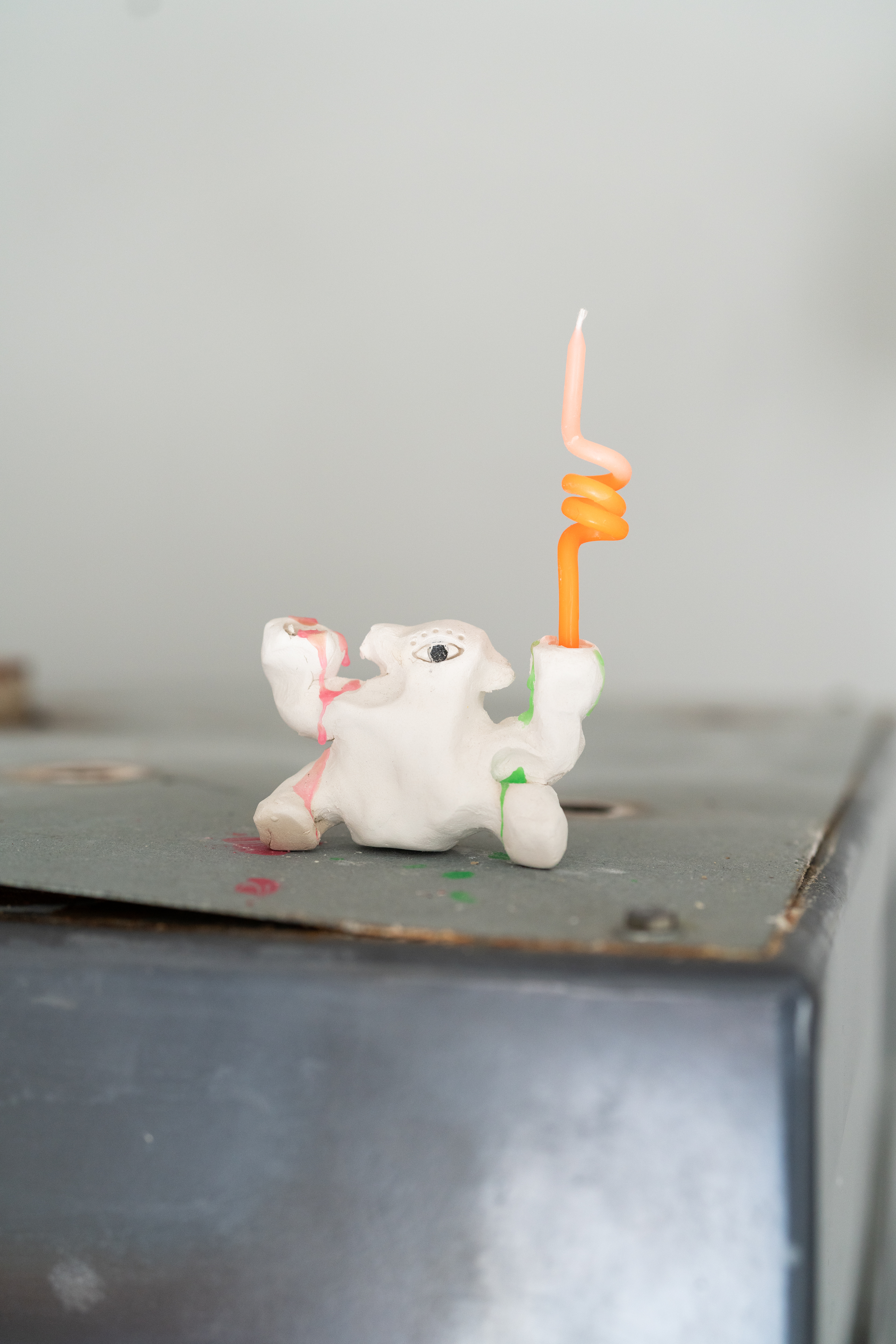 Scattered throughout Kaldahl’s studio are the minute physical elements that permeate his work, be they broken-off tiles, ceramic molds or left-over materials.