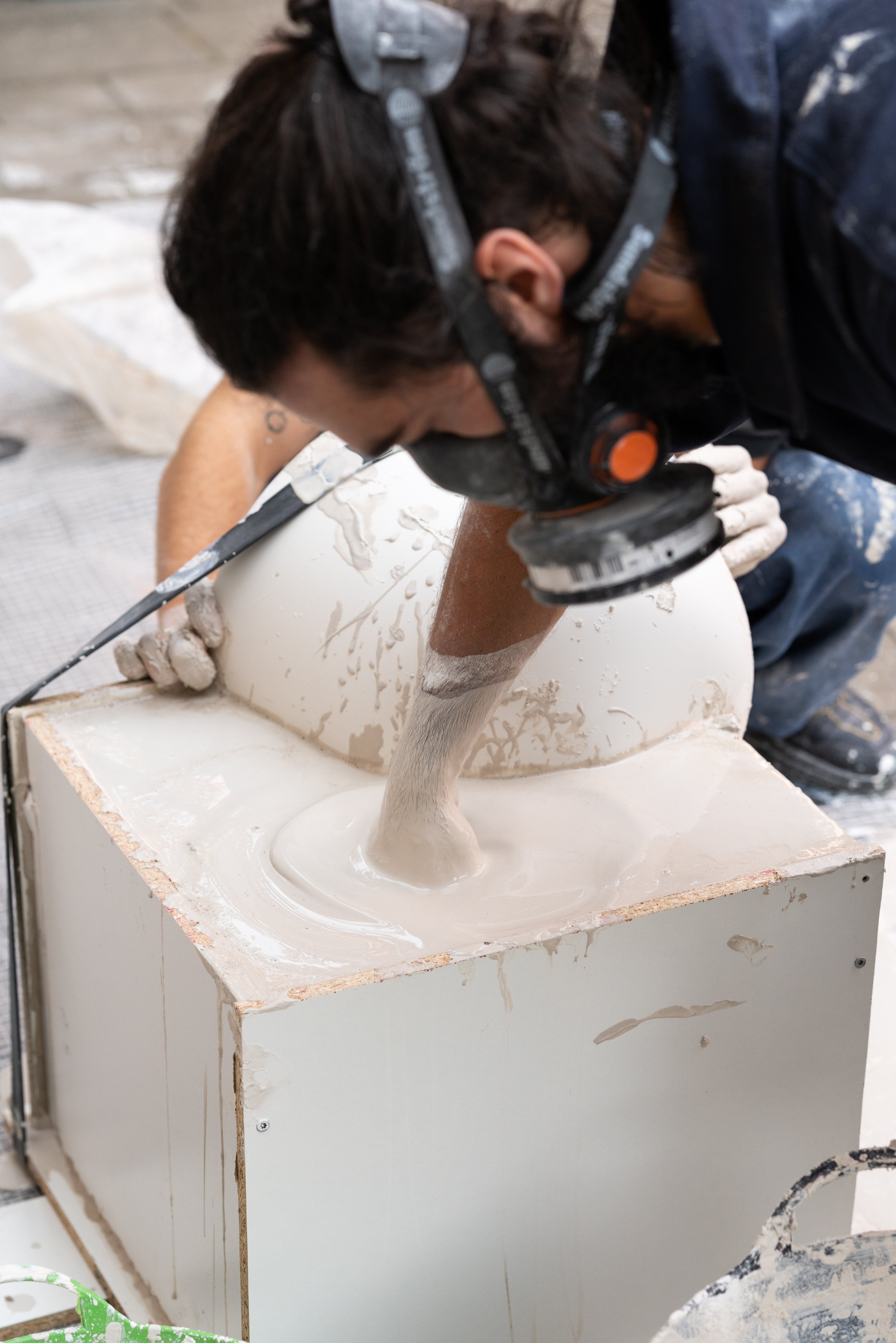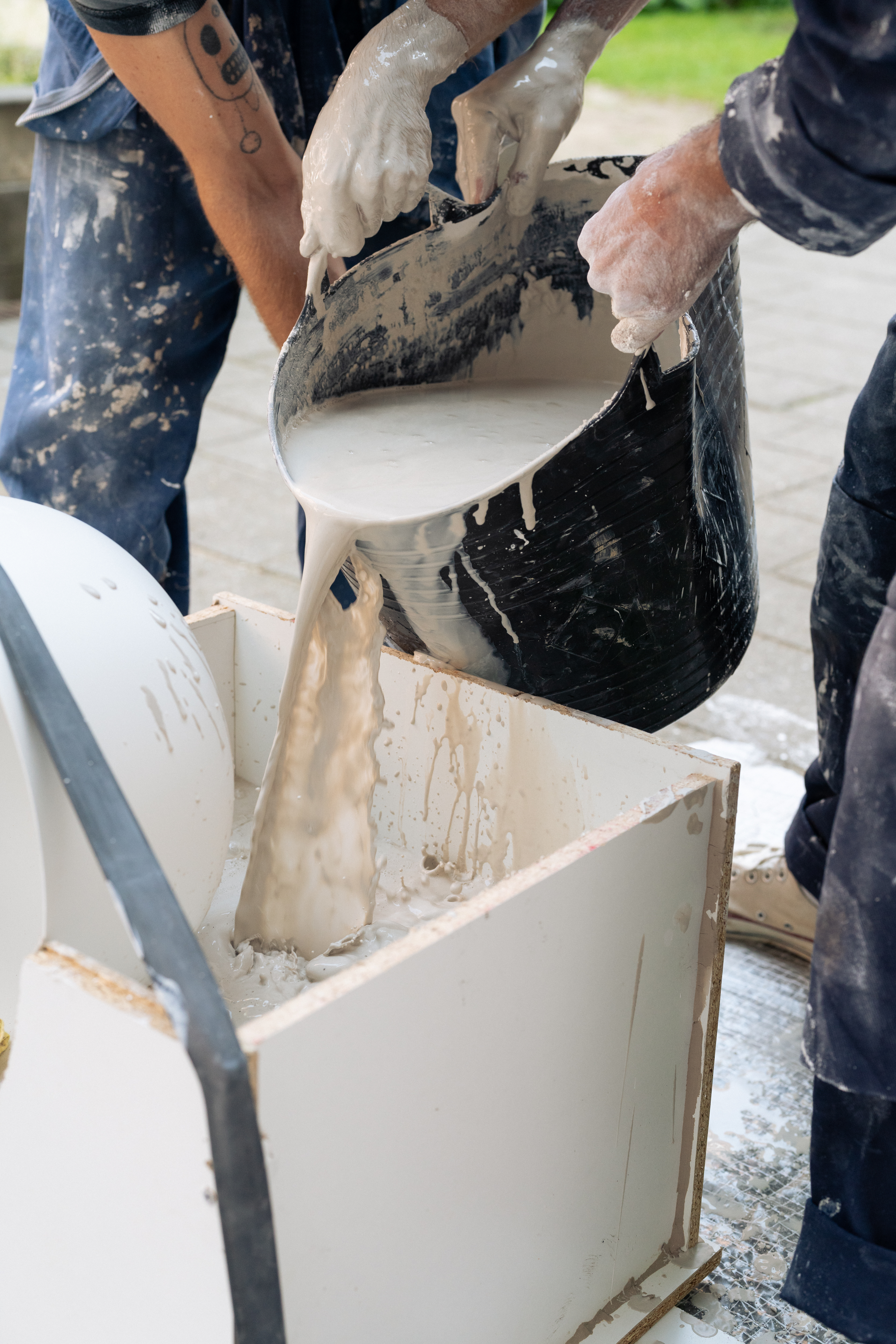 Plaster being poured into the Kink Vase as a means of exploring the negative space within the design.