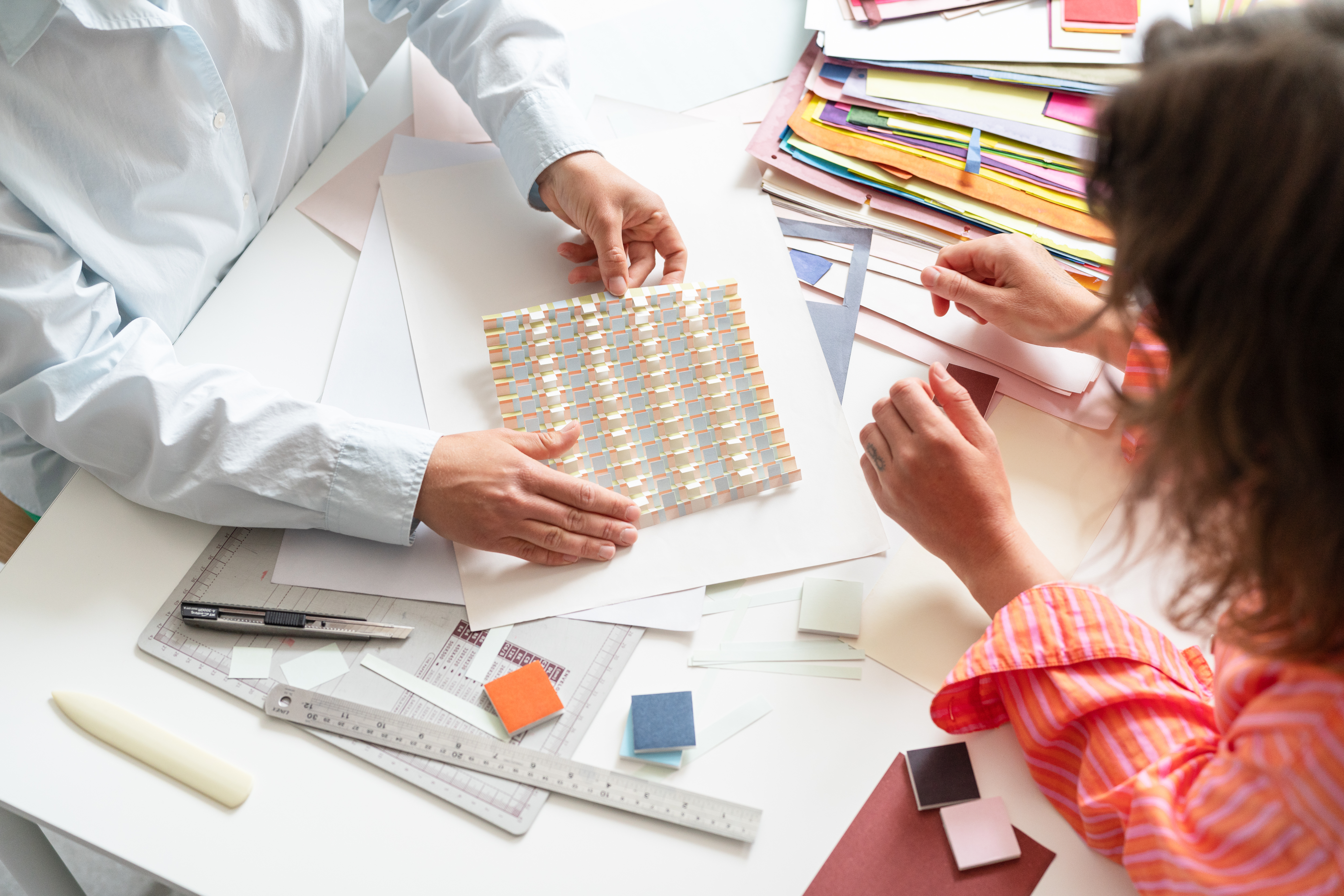 The dialogues and reflections that naturally occur from our collaboration challenge us as individuals and designers. Through that, our process becomes more unpredictable and thus, more innovative. We continuously search for new perspectives in both theoretical areas and the craft itself, discussing what we see and experience but also why we experience these very things. At the heart of our strive to create new perspectives is, to us, the unexplored potential of textile crafts in relation to other design disciplines, be it architecture, industrial design or the like. We want to use our knowledge within color, scale, light and materiality to enhance and evolve this potential.