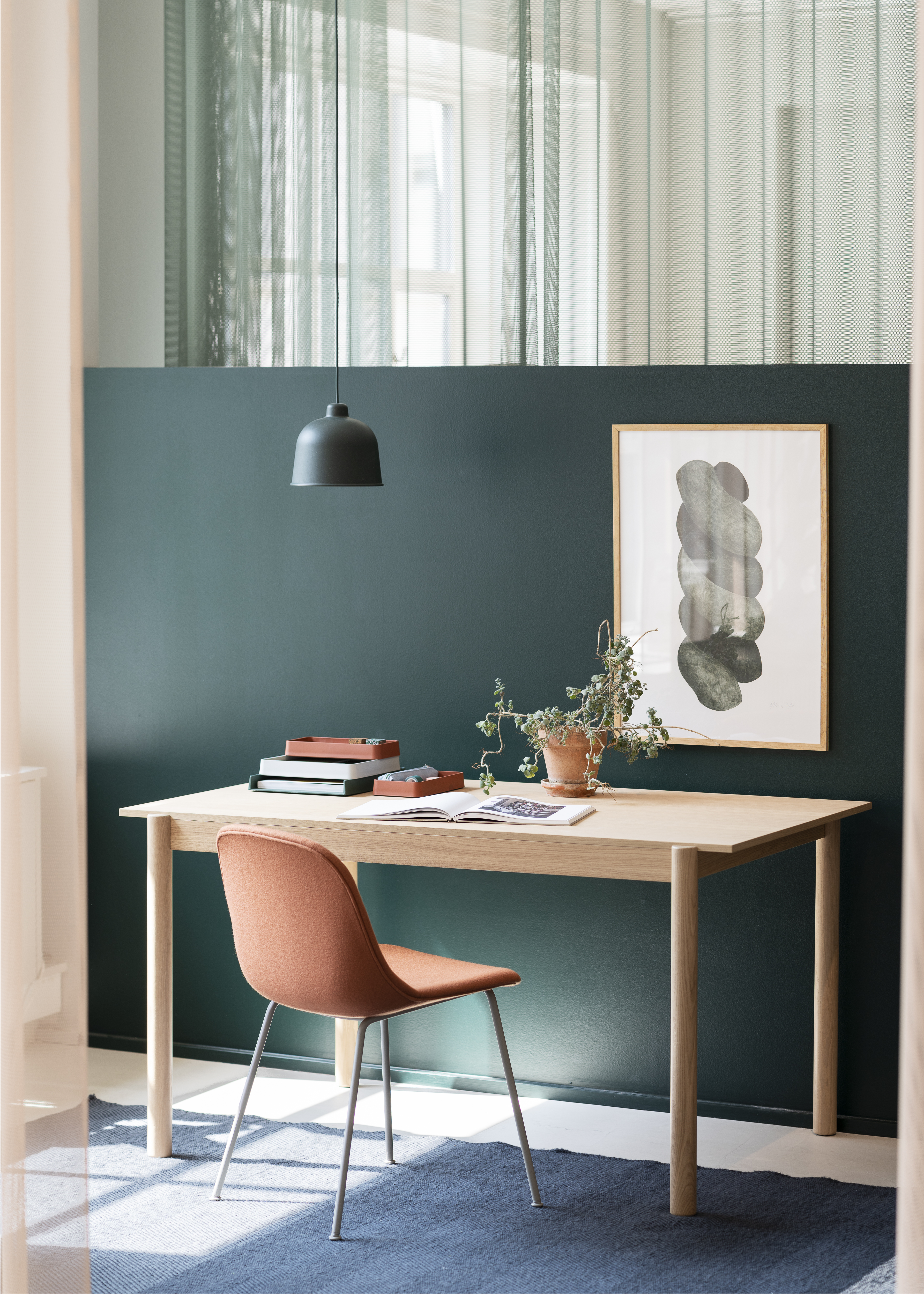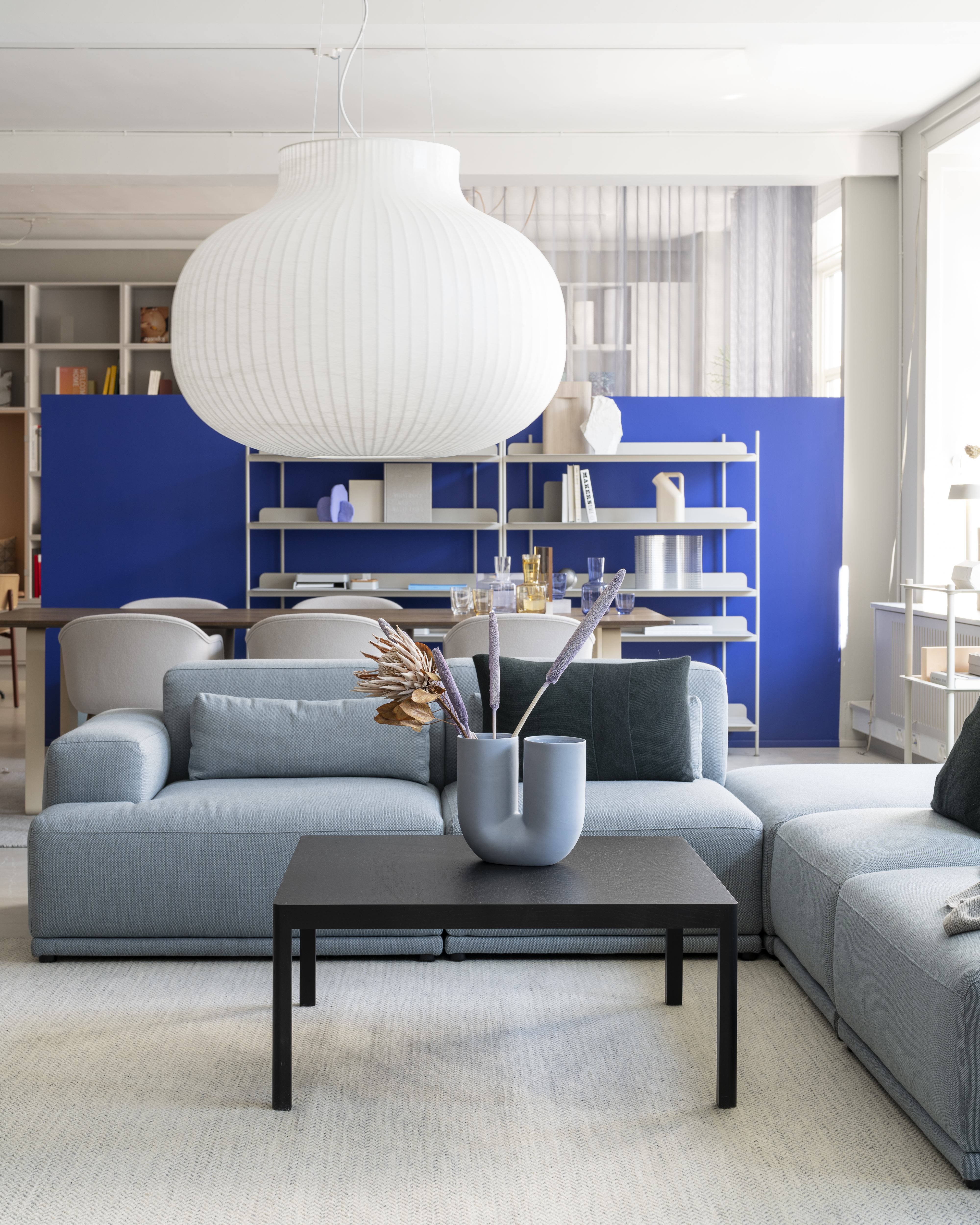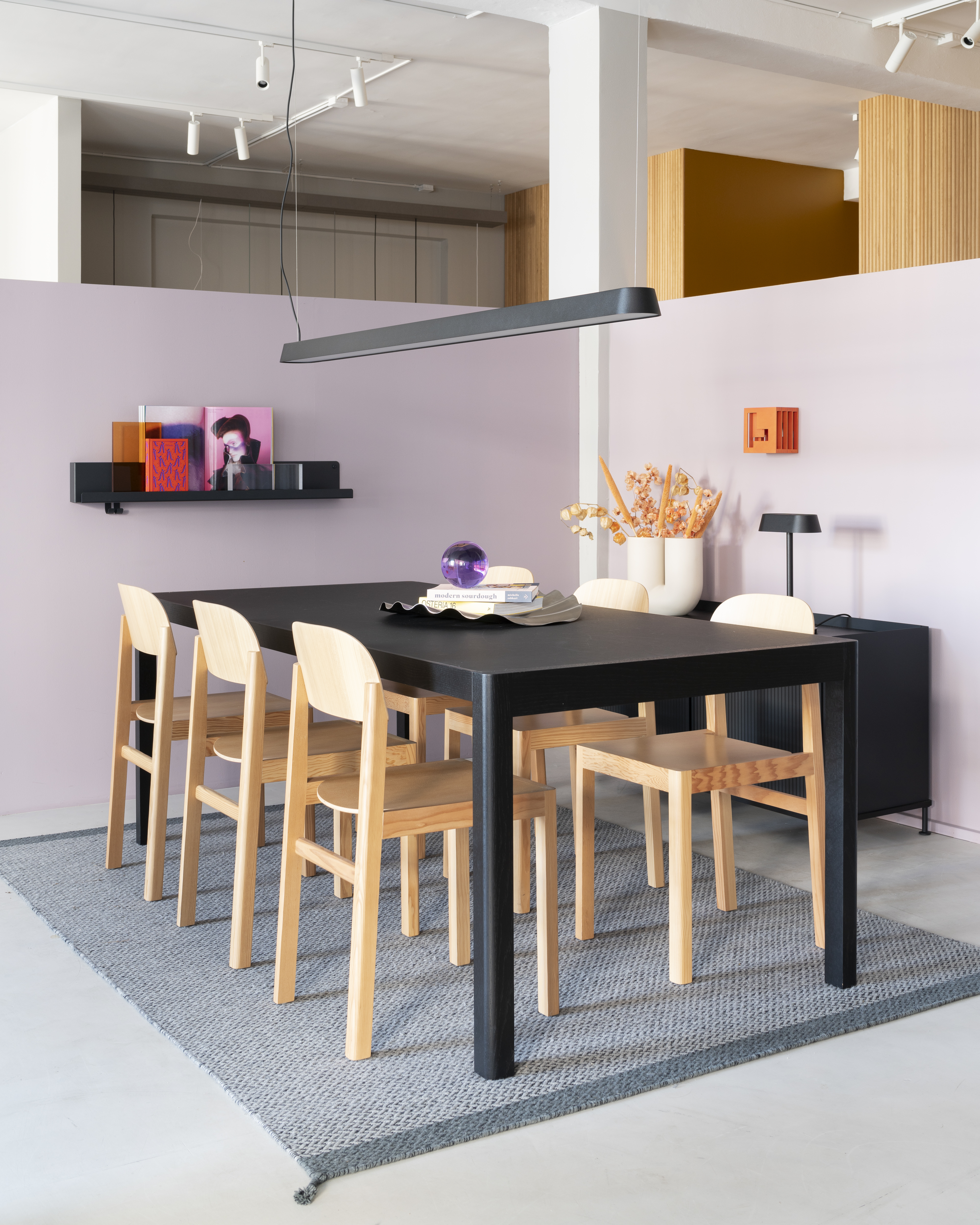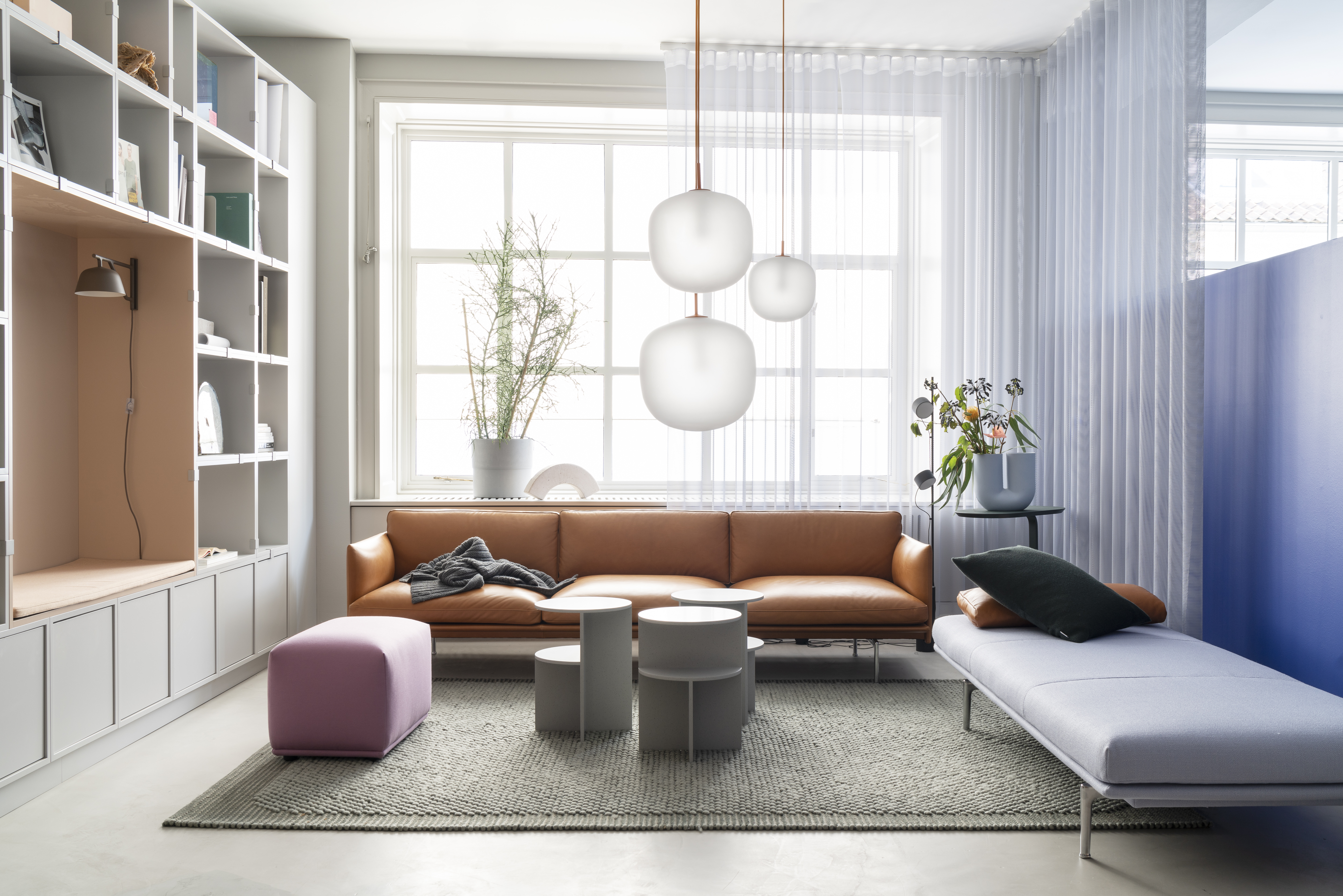 “We wanted to create a space that would serve as a functional workplace to the utmost degree for our employees while communicating the values and ideas of the Muuto universe throughout every single square meter, allowing us to welcome retailers, architects, dealers and press into our world,” and adds: “We wanted to explore the blurring lines between workplace and showroom with the hospitality atmosphere, emphasizing how our designs across furniture, lighting and accessories are suitable for any workplace context, whether it be canteen spaces, workstations, collaboration spaces or touch-downs”