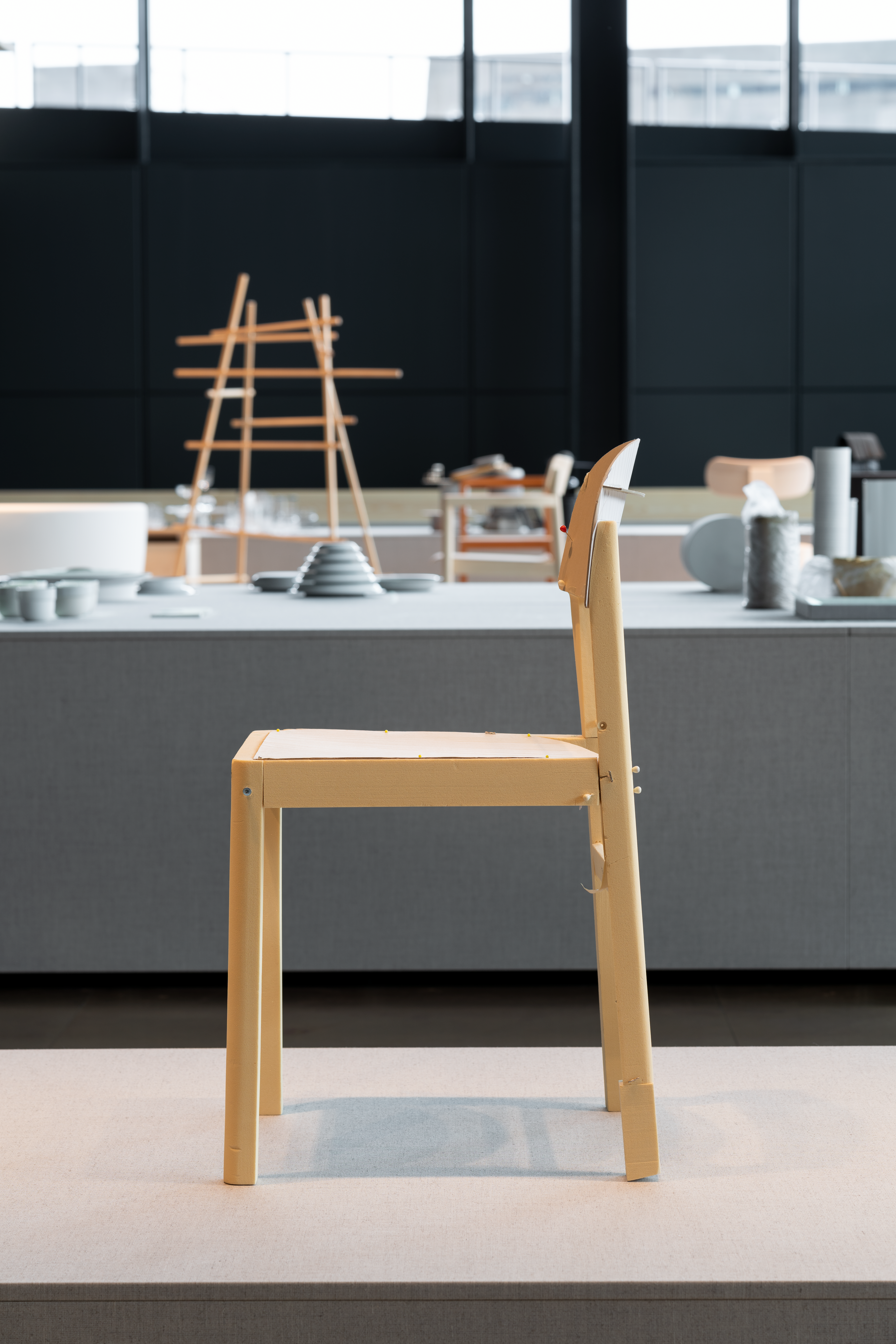 On the role of Workshop Chair in the exhibition, Manz notes: “I chose the Workshop Chair as one of two highlighted projects as I found it to be a concise example of a short and intense sprint from initial idea to the complete design. I tend to sketch around a lot, but the Workshop Chair was conceived solely through modelmaking in our workshop. It started with a rough iteration from where we made it more and more detailed throughout.”