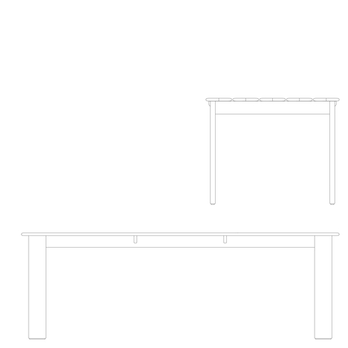 Made using FSC™-certified (FSC-C028824) teak. Teak is a durable hardwood well-suited for outdoor use. As a natural material, teak will display variations in color and grain from one piece to another. When left untreated, the wood will gradually develop a silver-grey patina. Over time, outdoor exposure may also lead to small cracks at the ends of the planks and slight warping, which can result in minor height differences between them. Direct sunlight may cause temporary color variations if objects are left on the surface for extended periods; these will even out once the object is removed. To maintain a deeper, warmer tone, clear tabletop oil can be applied periodically. The table is fitted with plastic glides suitable for outdoor use.