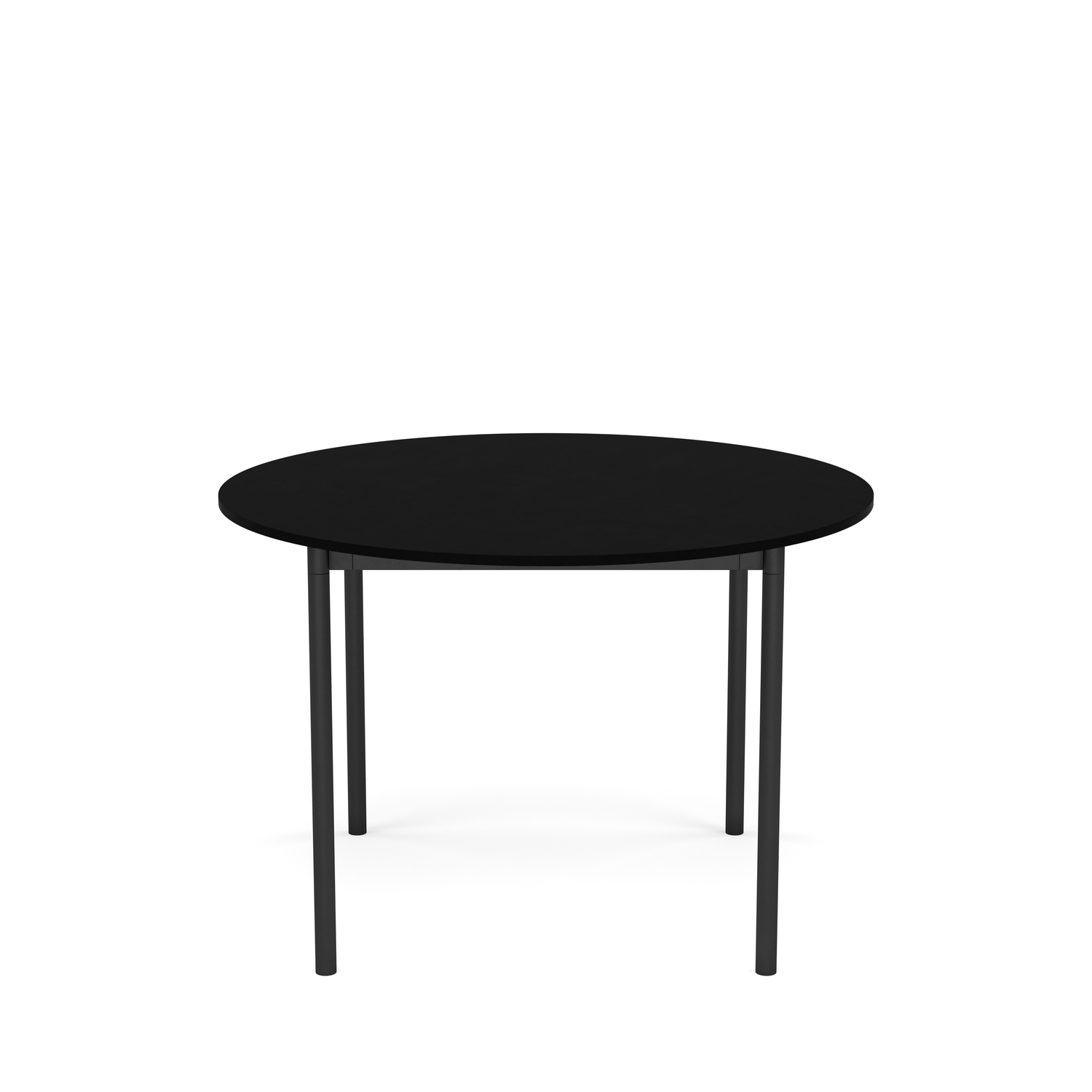 The tabletop is made of plywood with either laminate, linoleum, or oak veneer surface and a water-based lacquer. Plywood or ABS edges. Frame and legs in powder-coated aluminum.