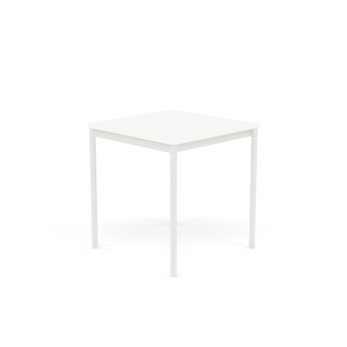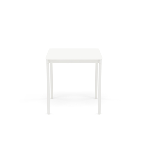 The tabletop is made of plywood with either laminate, linoleum, or oak veneer surface and a water-based lacquer. Plywood or ABS edges. Frame and legs in powder-coated aluminum.