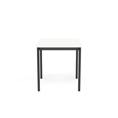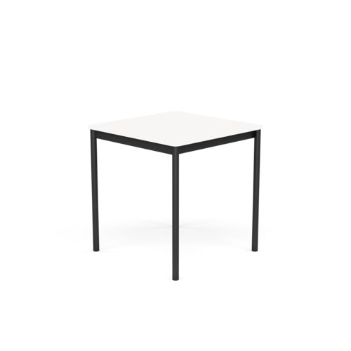 The tabletop is made of plywood with either laminate, linoleum, or oak veneer surface and a water-based lacquer. Plywood or ABS edges. Frame and legs in powder-coated aluminum.