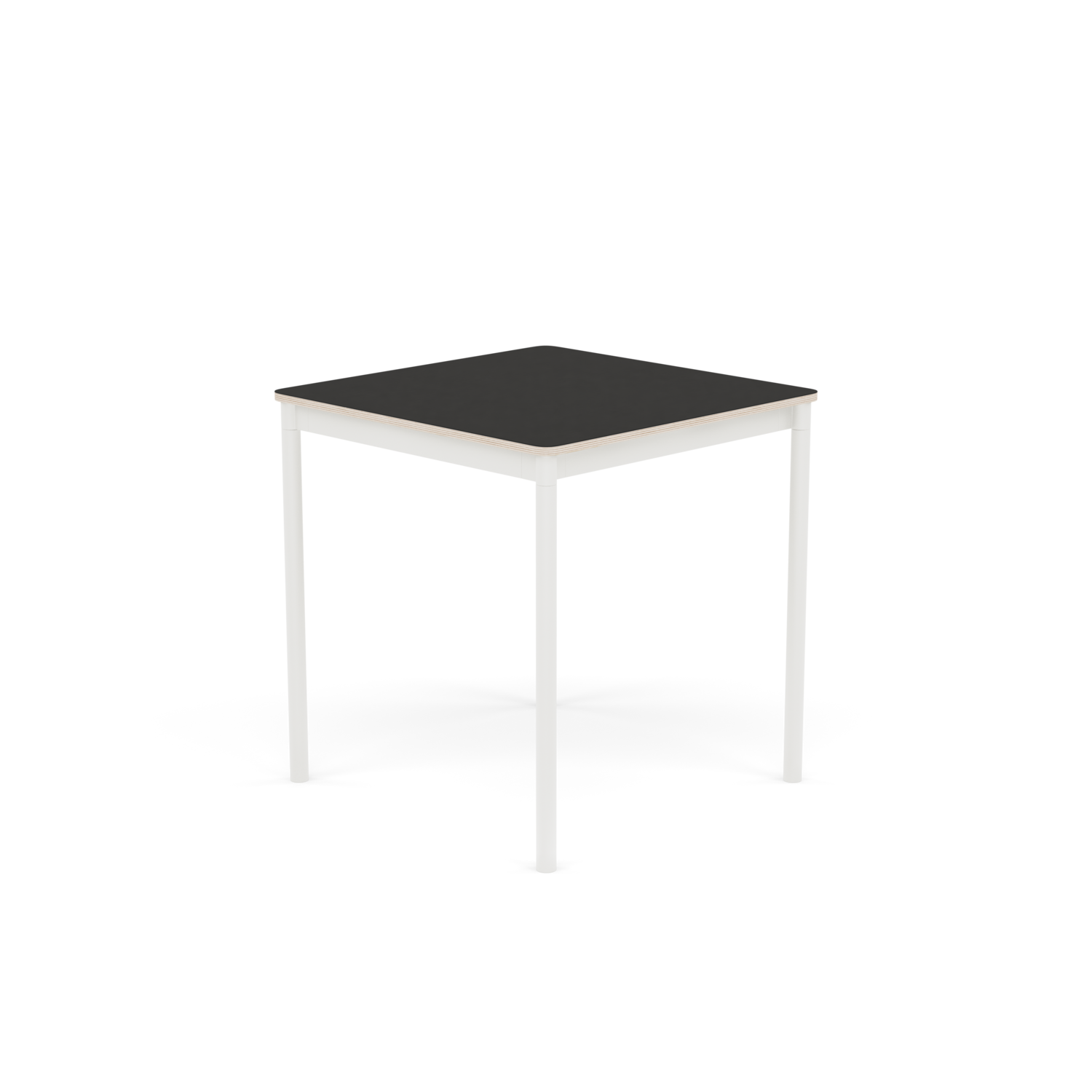 The tabletop is made of plywood with either laminate, linoleum, or oak veneer surface and a water-based lacquer. Plywood or ABS edges. Frame and legs in powder-coated aluminum.