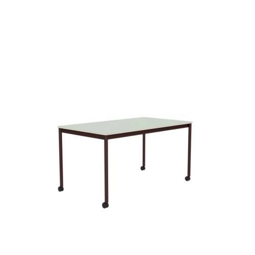 The tabletop is made of plywood with either laminate, linoleum, or oak veneer surface and a water-based lacquer. Plywood or ABS edges. Frame and legs in powder-coated aluminum.