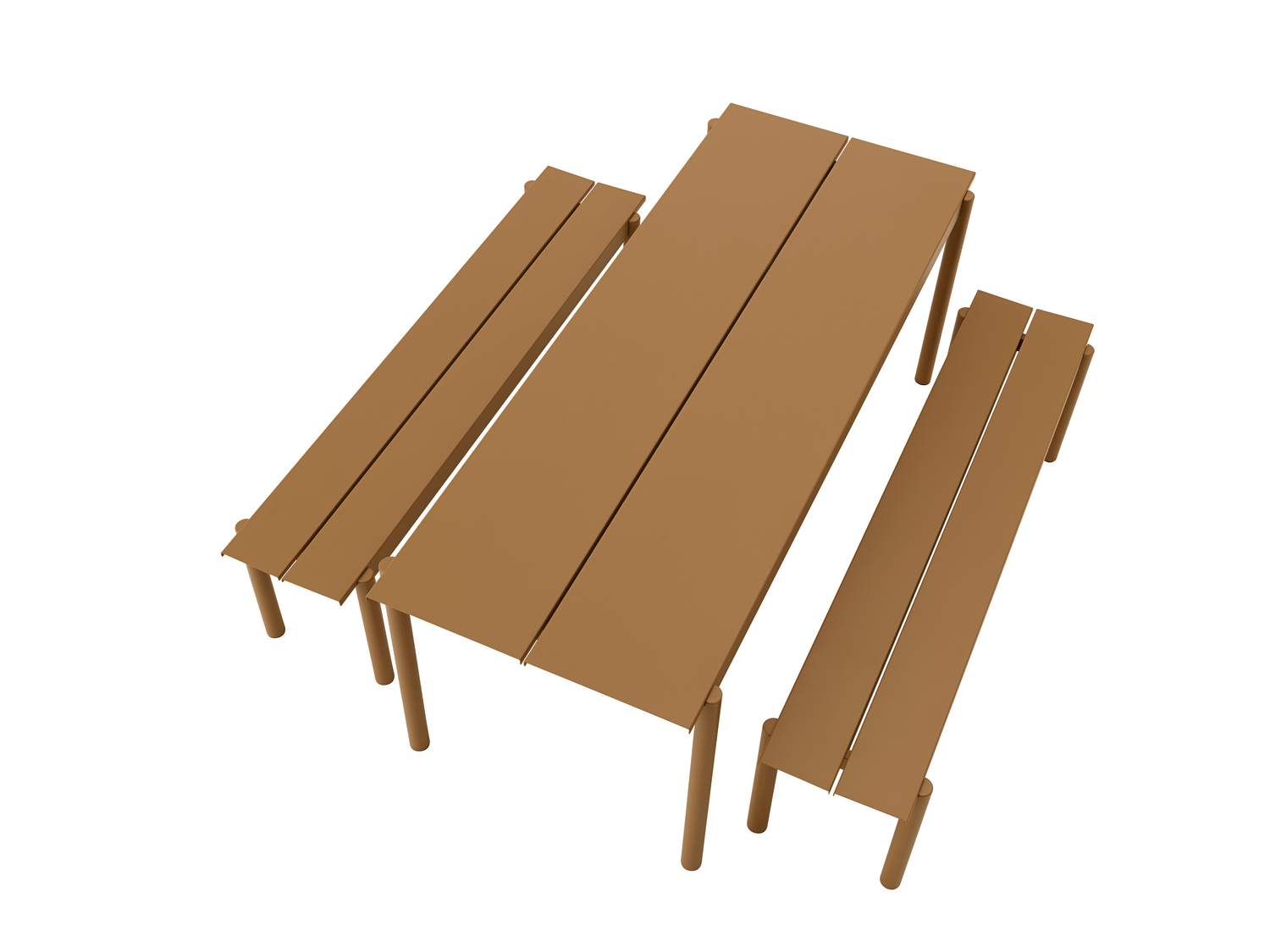 The Linear Steel Table brings new perspectives to modern outdoor furniture through its straight lines alongside the folded edges, halfcircular intersecting legs and small spacing for easy removal of water. Kept visually clean for long-lasting aesthetics, the Linear Steel Table finds its distinct character through subtle detailing and a simple expression, allowing for it to complement any outdoor setting. Pair the table with the Linear Steel Bench, designed in proportions that allow for it to slide easily under the table.
