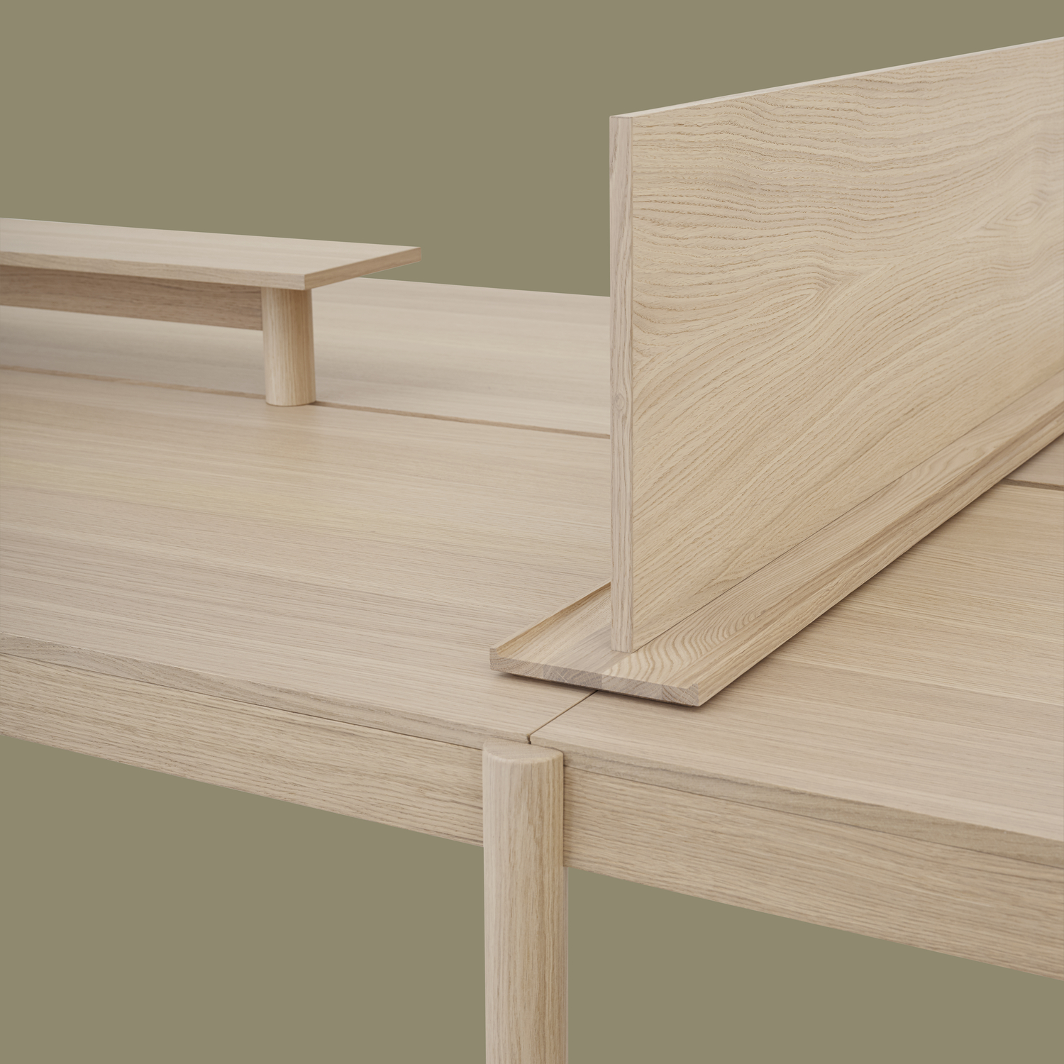 The Linear System Screen creates intimate atmospheres without shielding one from the outside world alongside the subtle functionality of its integrated feet on both sides for storing smaller objects. Can be used either freestanding or mounted onto the Linear System Series.