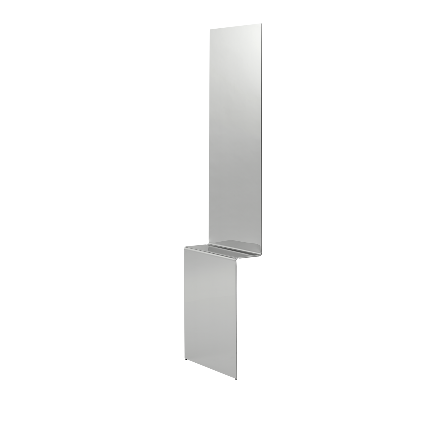 The Pleat Mirror reimagines a full-length mirror as a sculptural, architectural element. Crafted from mirror-polished stainless steel, it reflects its surroundings with a bold, contemporary expression, while its folded form adds depth and visual interest. The reflective surface shifts with the room and light, behaving almost like a living artwork. Cut from a single steel sheet to precise proportions, its scale echoes a doorway, lending it presence in both residential and commercial spaces. Combining industrial materiality with soft, fluid curves, Pleat feels minimal yet commanding.