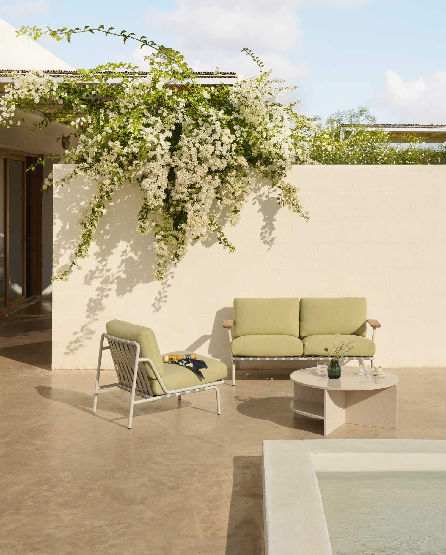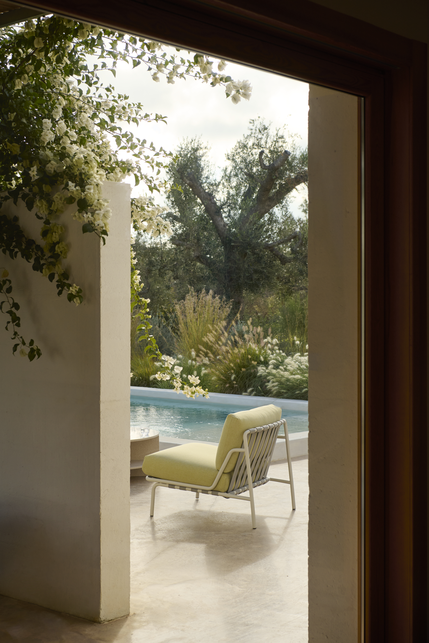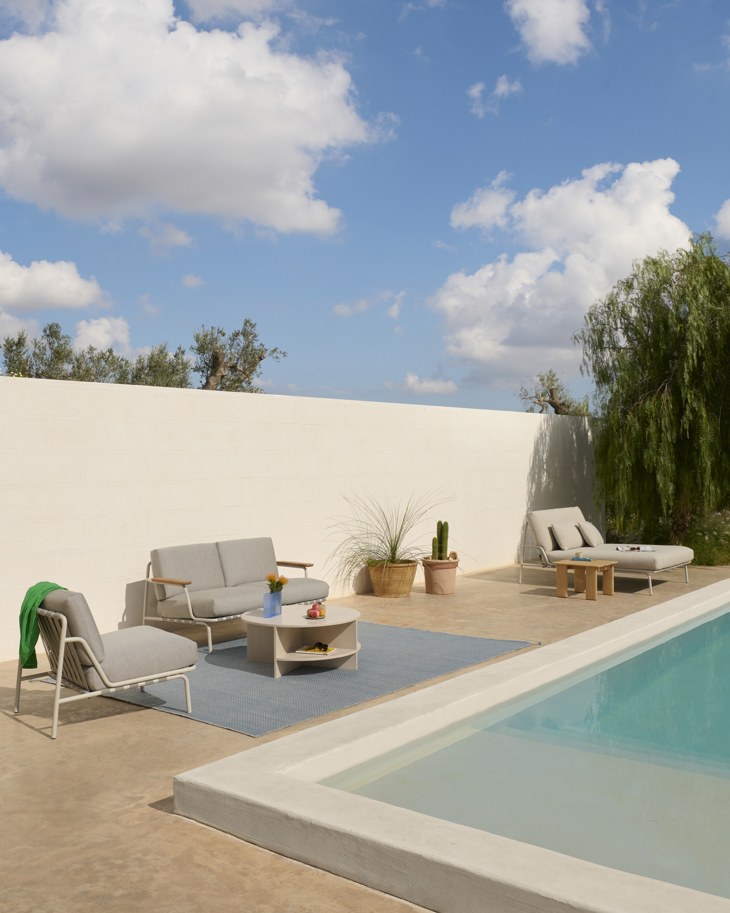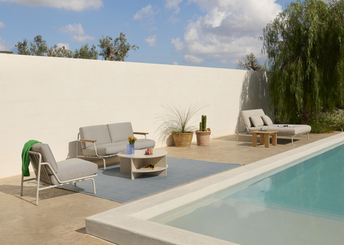 The Settle Lounge Chair invites you to settle into its comfort, providing an ideal setting for enjoying the outdoors all day. Its airy steel frame, complete with visible belts and intricate details, enhances its visual allure from all angles. Settle’s steel frame is galvanized, primed, and powder-coated, ensuring corrosion resistance for long-lasting use. The plush cushions, made with quick-dry foam and durable outdoor textiles, offer fast-drying resilience in rain showers and year-round durability when used with an outdoor cover.