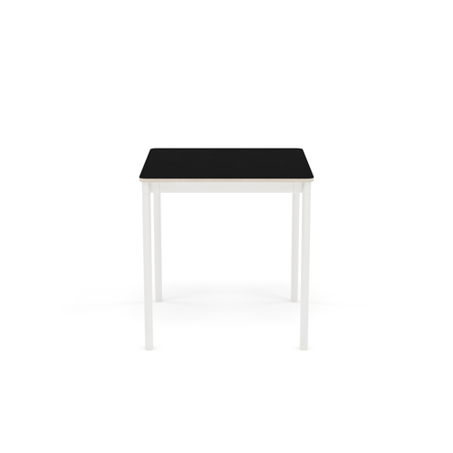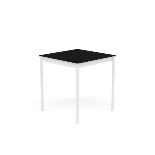 The tabletop is made of plywood with either laminate, linoleum, or oak veneer surface and a water-based lacquer. Plywood or ABS edges. Frame and legs in powder-coated aluminum.