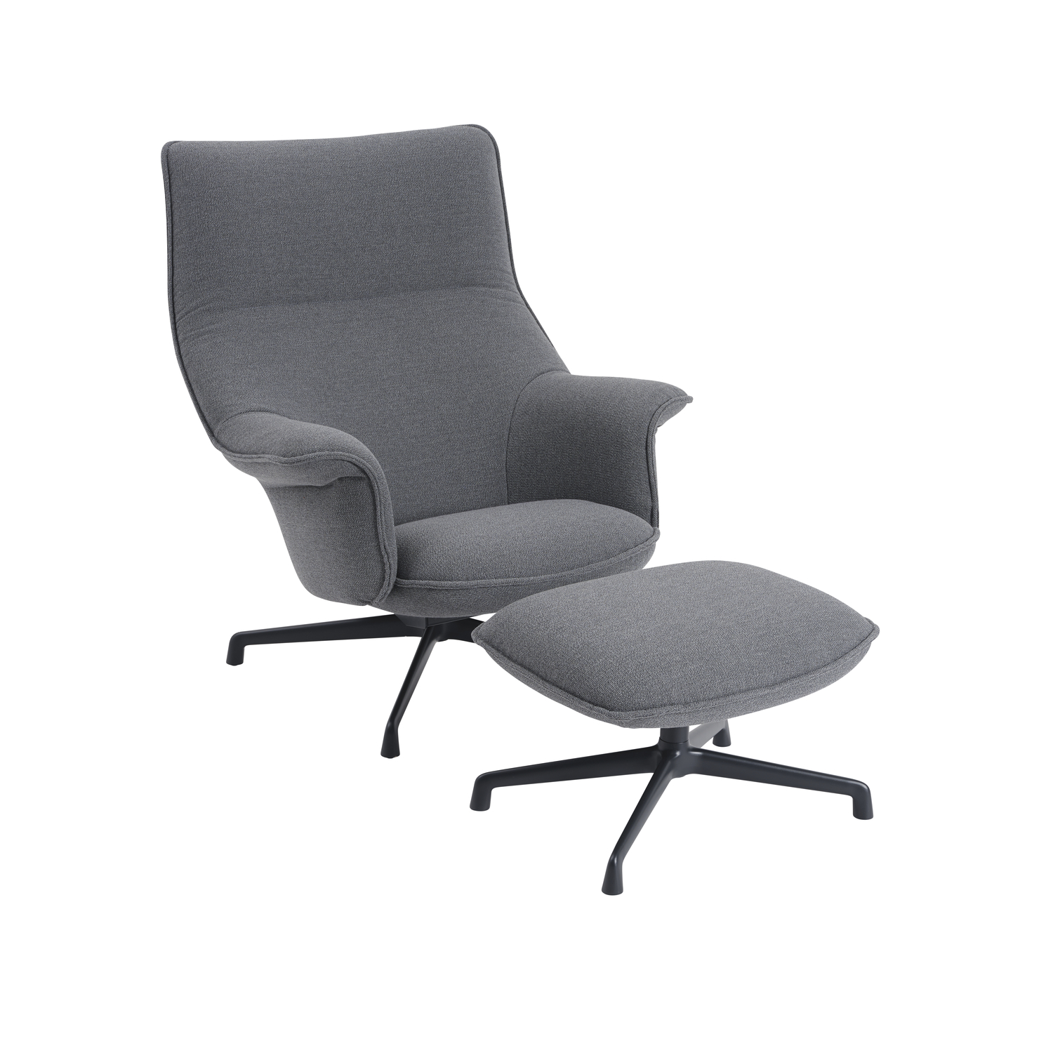 The Doze Lounge Chair & Ottoman are made from metal, foam, and wadding and finished with textile, imitation leather, or leather upholstery. The leather comes from selected premium leather suppliers.