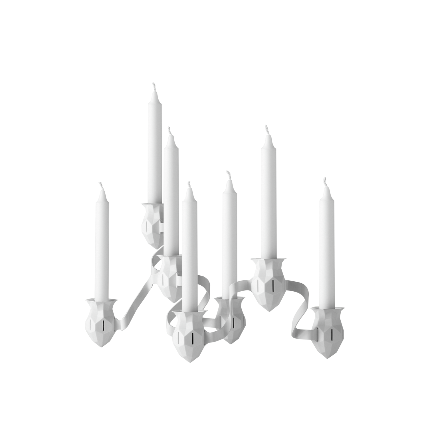 With its name matching its cheerful design, the More the Merrier candelabra consists of seven candleholders and six connectors, enabling the design to be put together symmetrically or at random. Made of rubber and steel, the More the Merrier combines industrial materials with sleek, unique shapes.